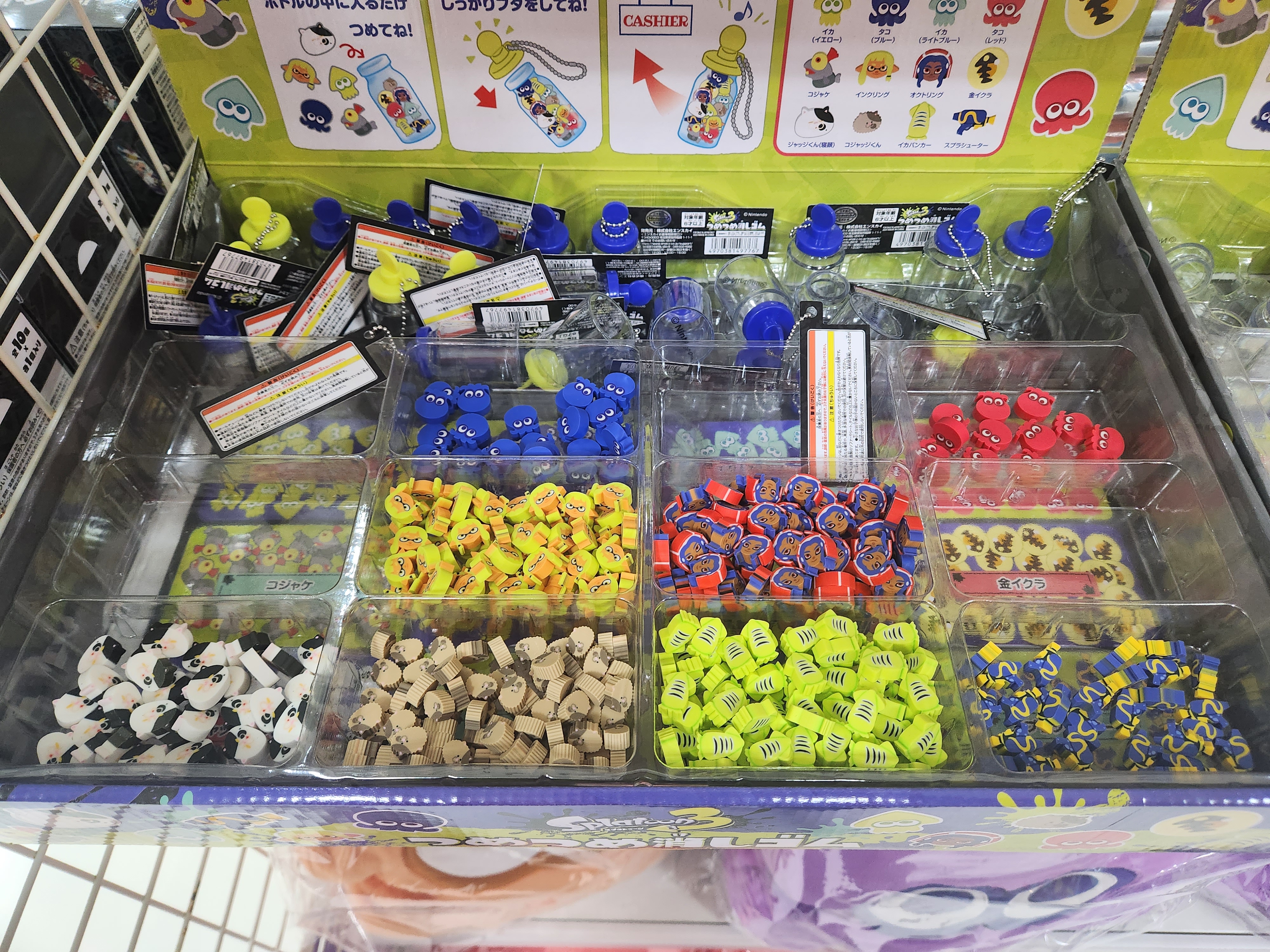스플래툰 지우개 시리즈들입니다. 인기가 좋은 연어, 연어알 지우개는 초반에 완판된 이후로 입고가 안됩니다.