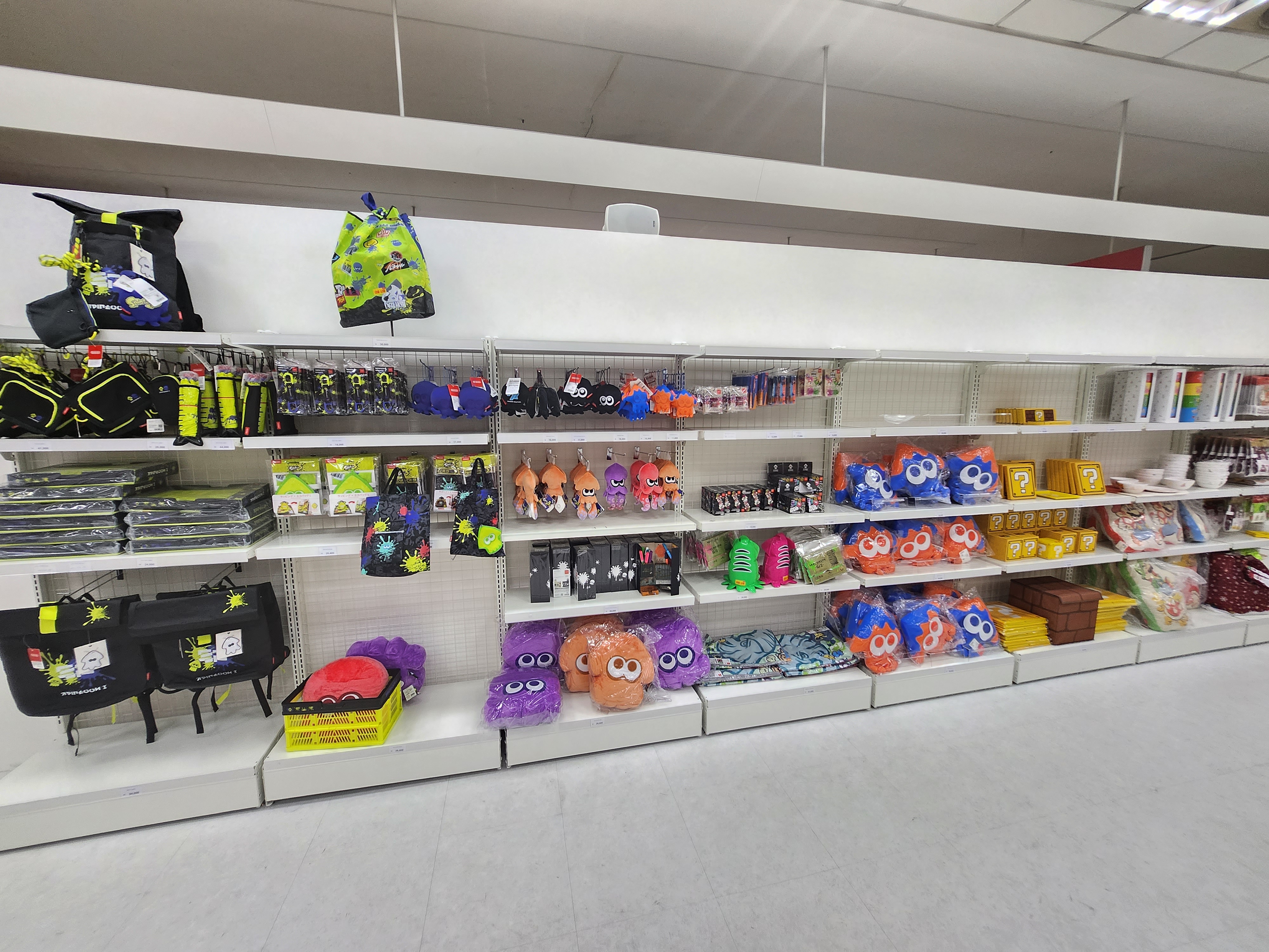 아직 다양한 물건들을 팔긴 하지만 확실히 초기에 비해선 양이 많이 줄어든 모습입니다. 커비의 경우 인형들은 이 정도로만 판매되고 있었고 문구, 완구류 역시 많이 나갔습니다.