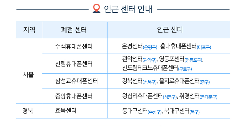 수색지점은 은평구의 은평센터와 마포구의 홍대휴대폰센터로,