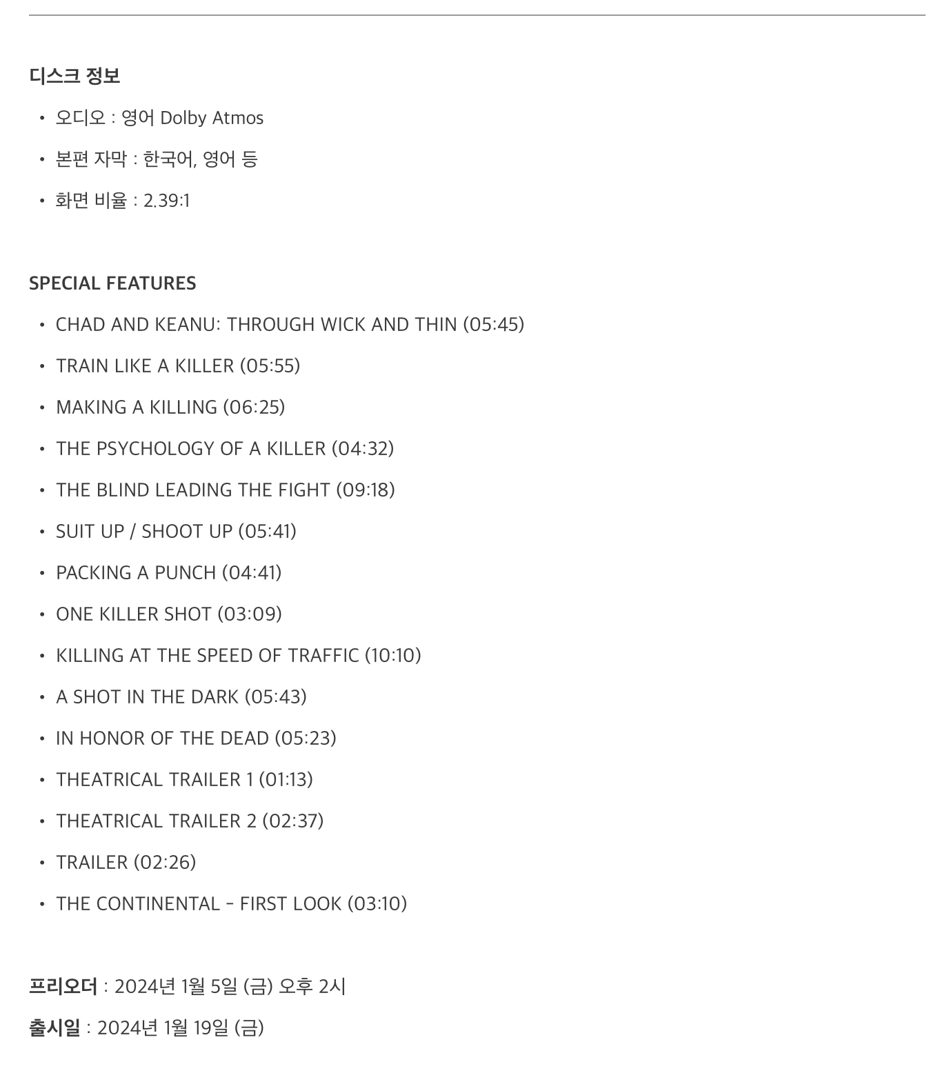 가장 먼저 전달할 소식은 이미 예전에 공지가 된 존 윅 챕터4 4K블루레이 한국 정발 예약 판매 소식입니다.