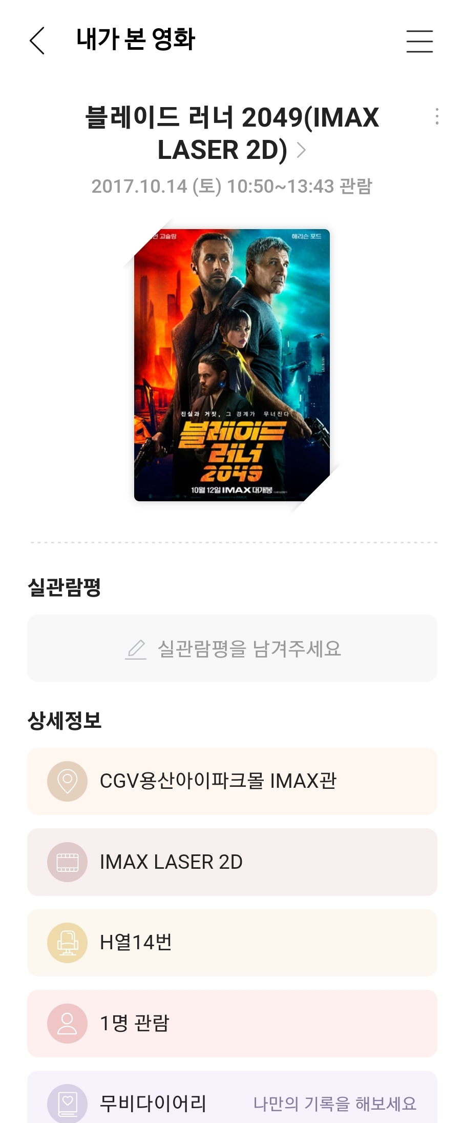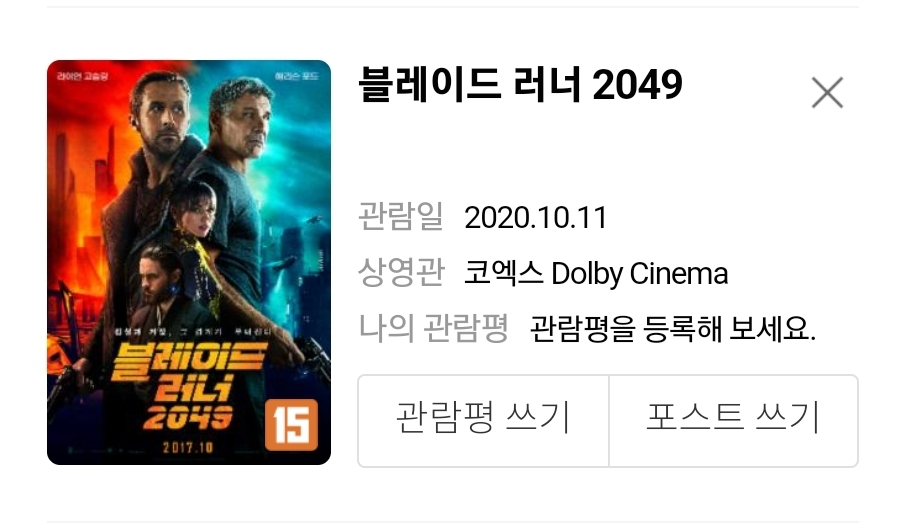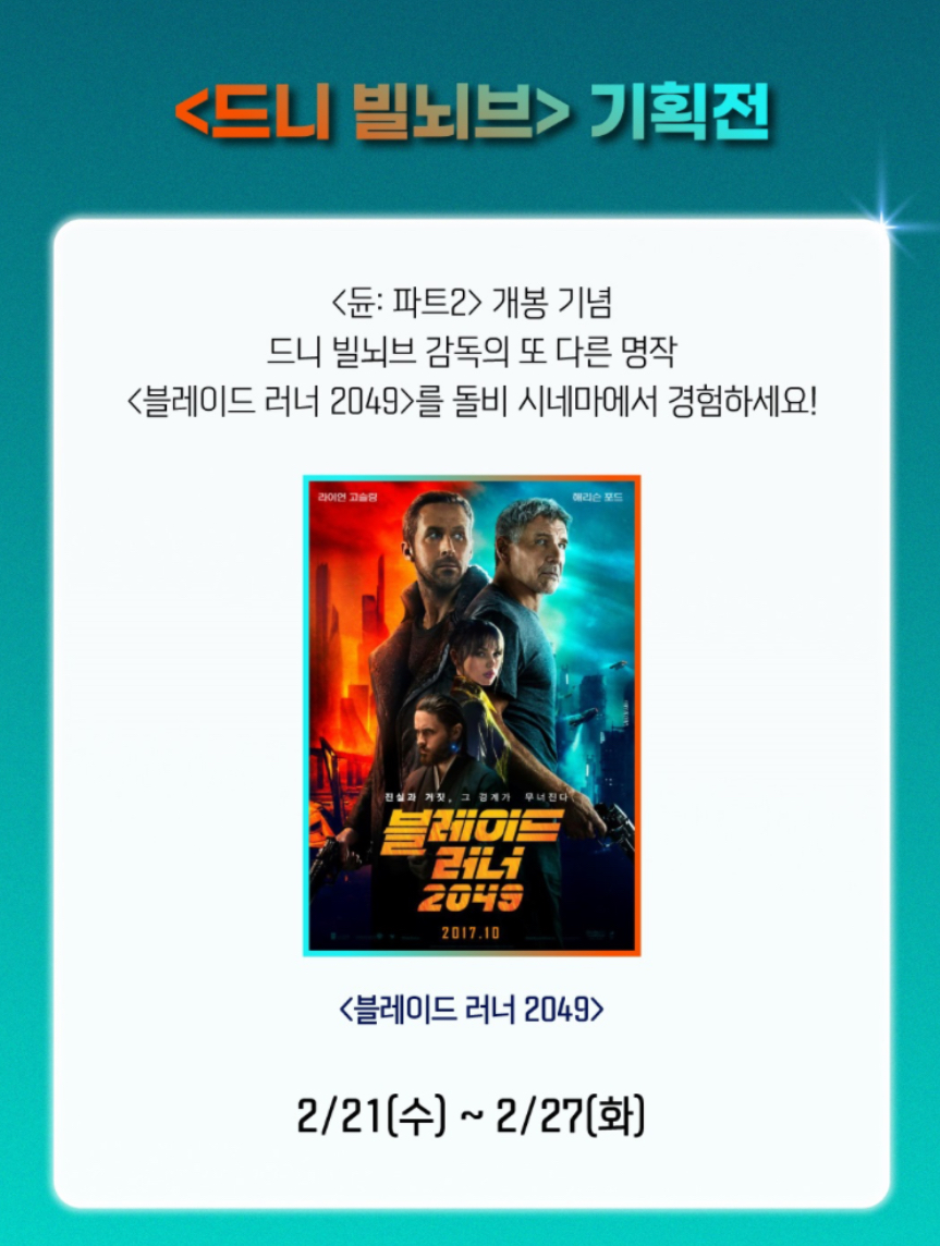 메가박스에서 돌비시네마로 드니 빌뇌브 감독의 블레이드 러너 2049를 재개봉한다고 하지요.