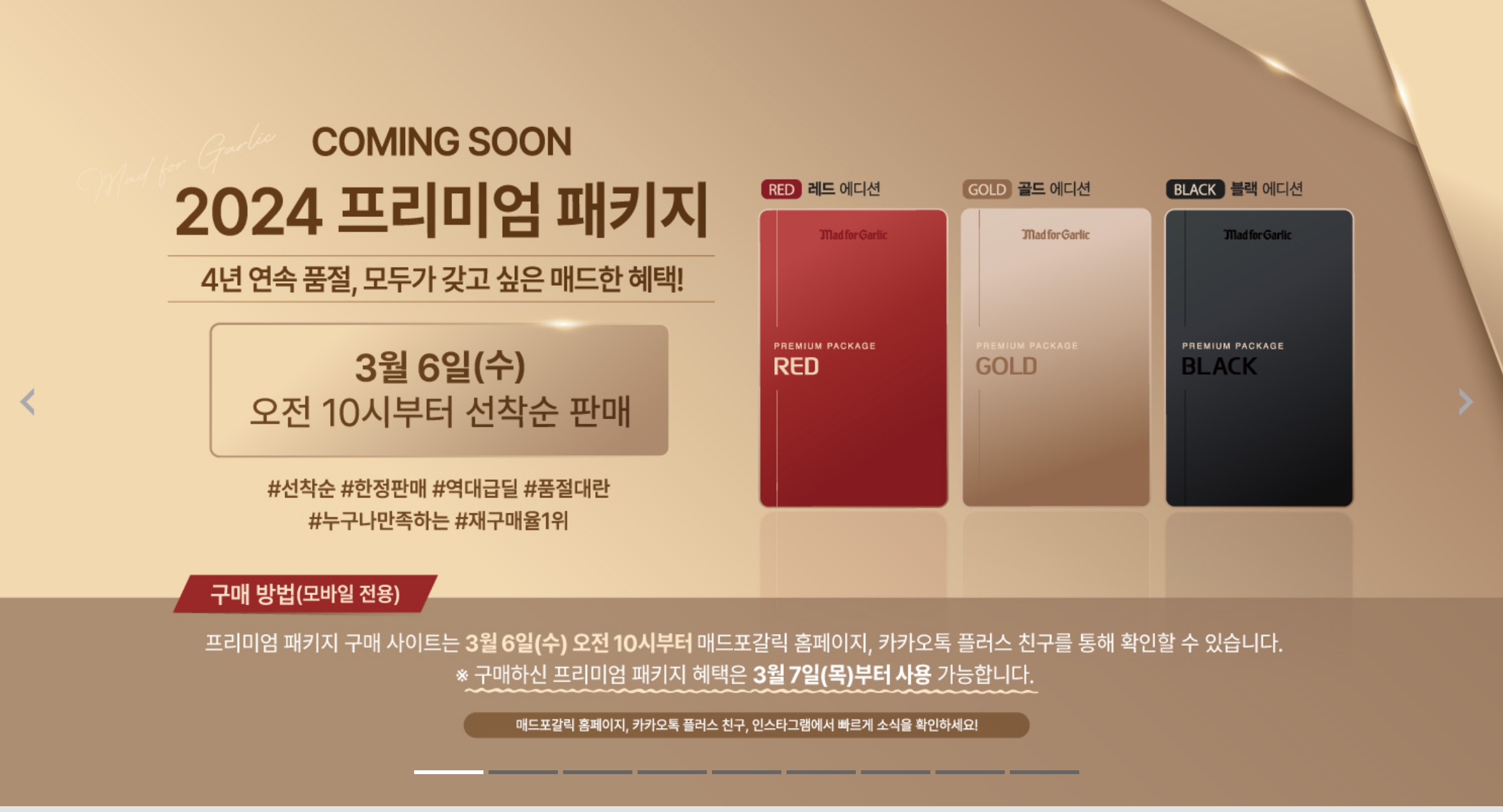 바로 2024년 3월 6일 수요일 오전 10시부터 2024년 매드포갈릭 프리미엄 패키지를 선착순 판매한다는 소식입니다.