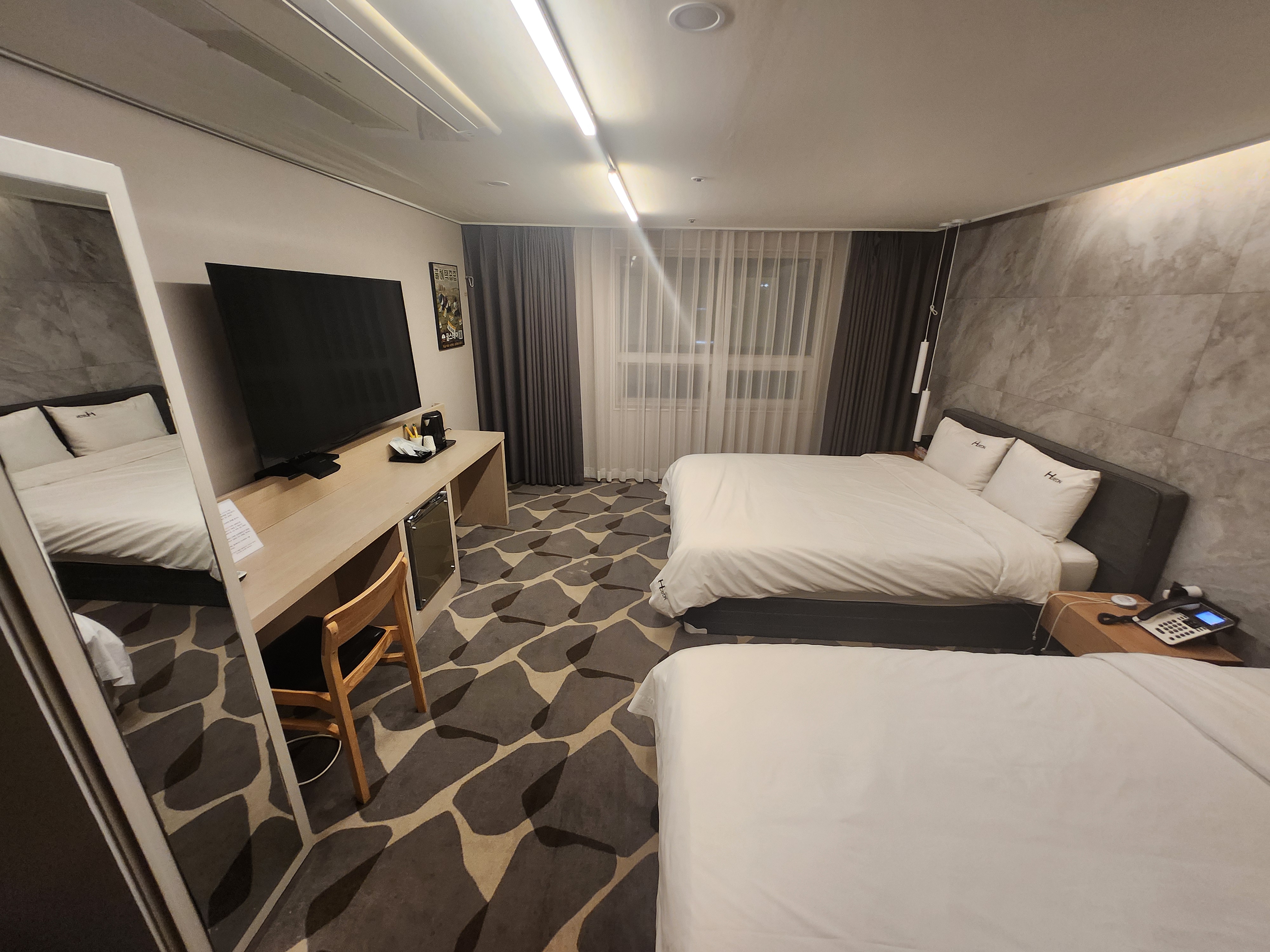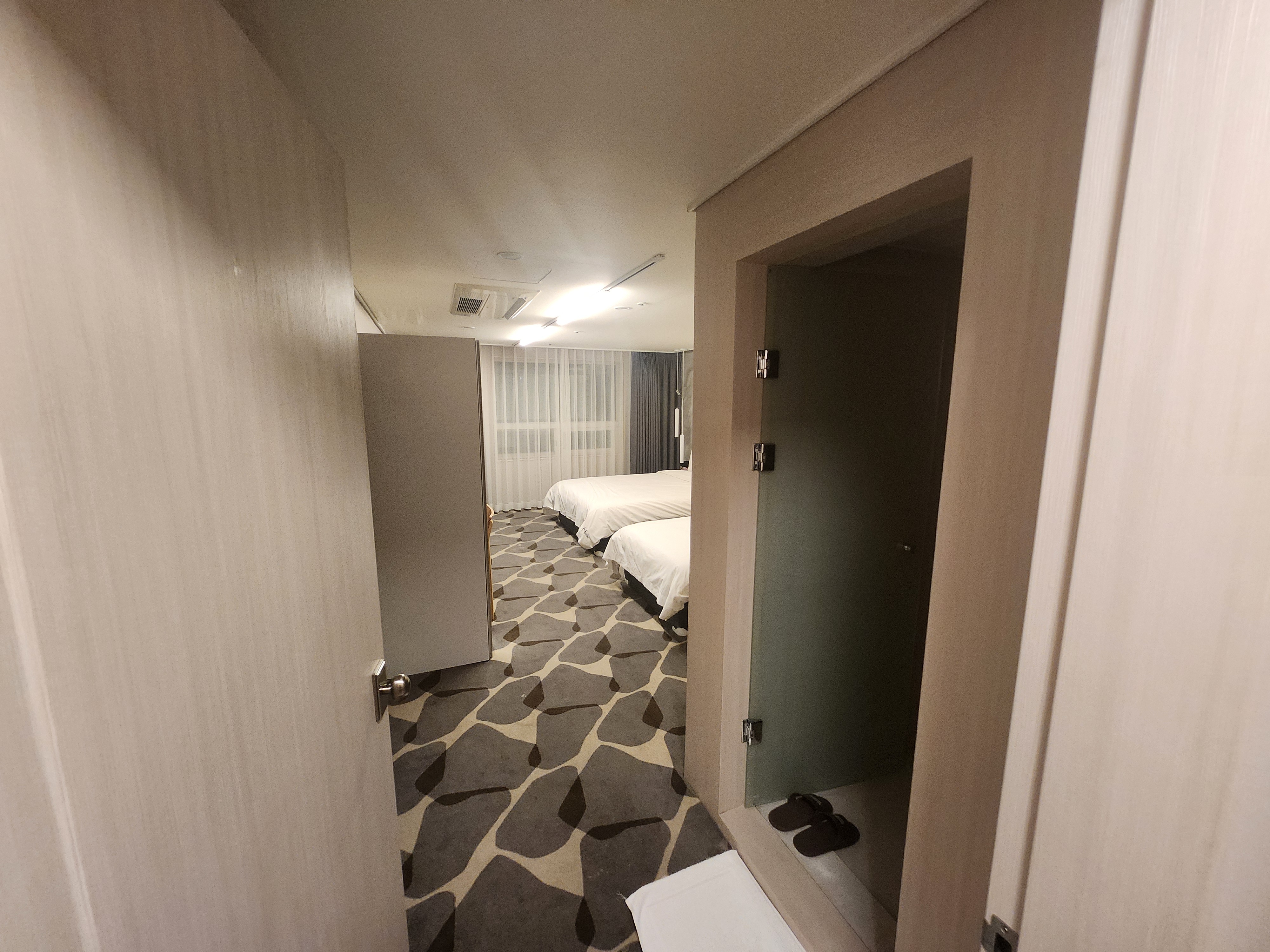 그리고 방에서의 방음이 살짝 안되는 느낌이었습니다. 뭔가 화장실, 밖쪽에서 일정한 시간마다 살짝 무언가 문에 부딪치는 그런 소리가 난 것이 신경이 쓰이곤 했습니다.