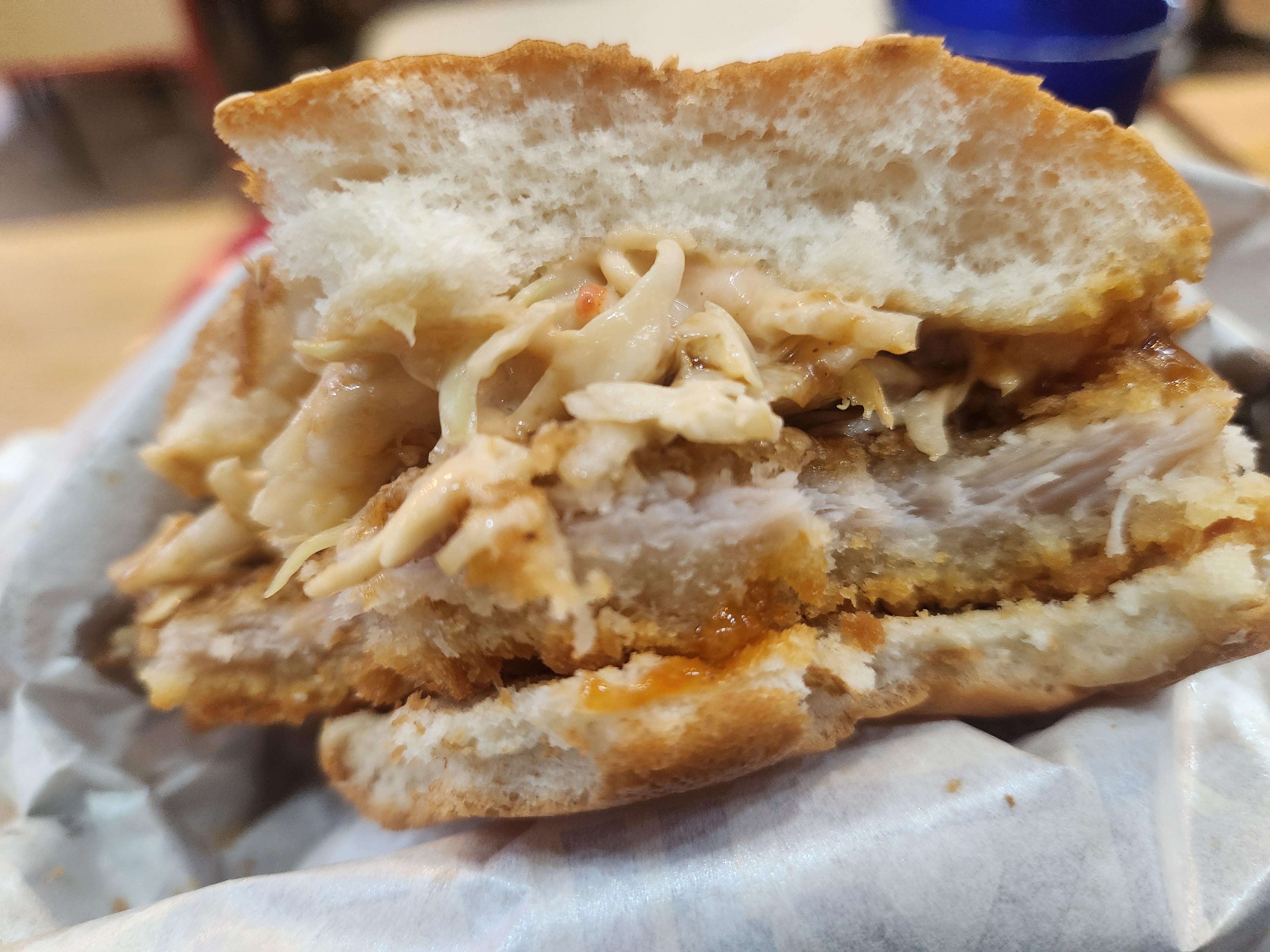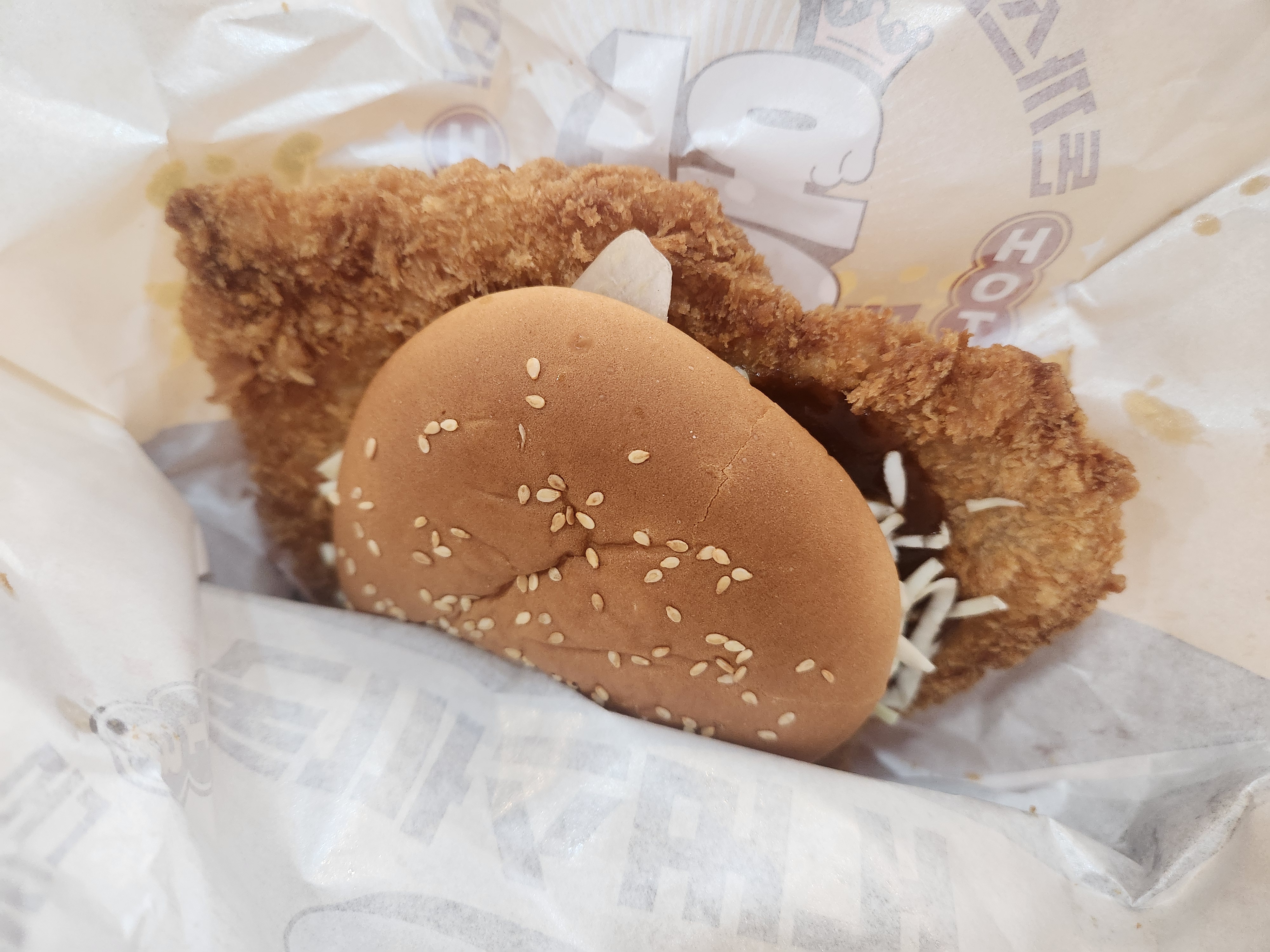 말 그대로 옛날 시장햄버거에서 패티나 햄 대신에 왕돈가스가 들어간 느낌이라고 할 수 있겠습니다.