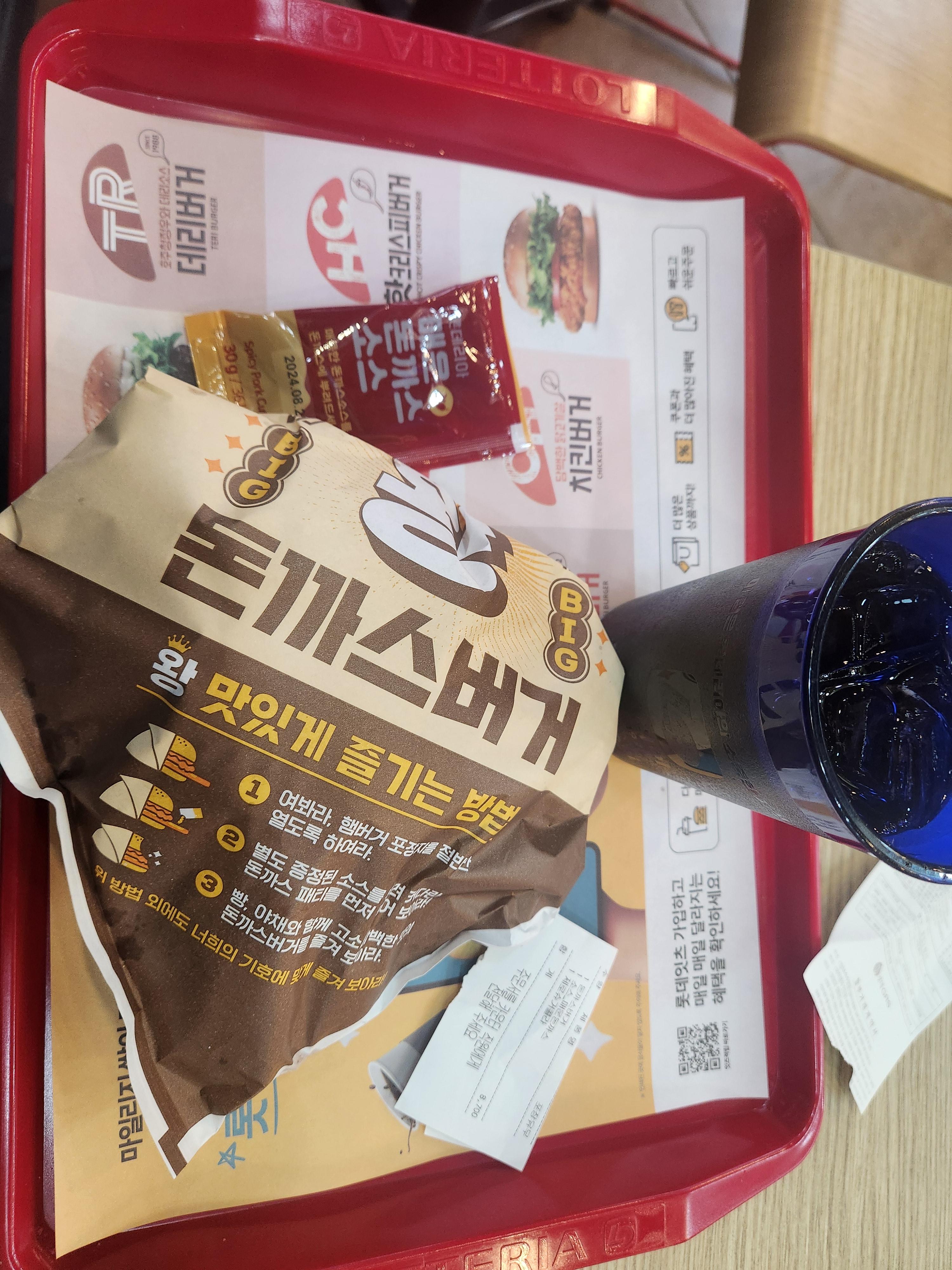 그동안 빵 대신 밥을 사용한 비빔버거같은 이색적인 메뉴들이 있었습니다만 그 중에서 이 왕돈까스버거가 '이거 또 먹고 싶다'는 생각이 많이 들었습니다. 자주 먹진 않겠지만 가끔씩 생각나서 먹을 맛이었습니다.