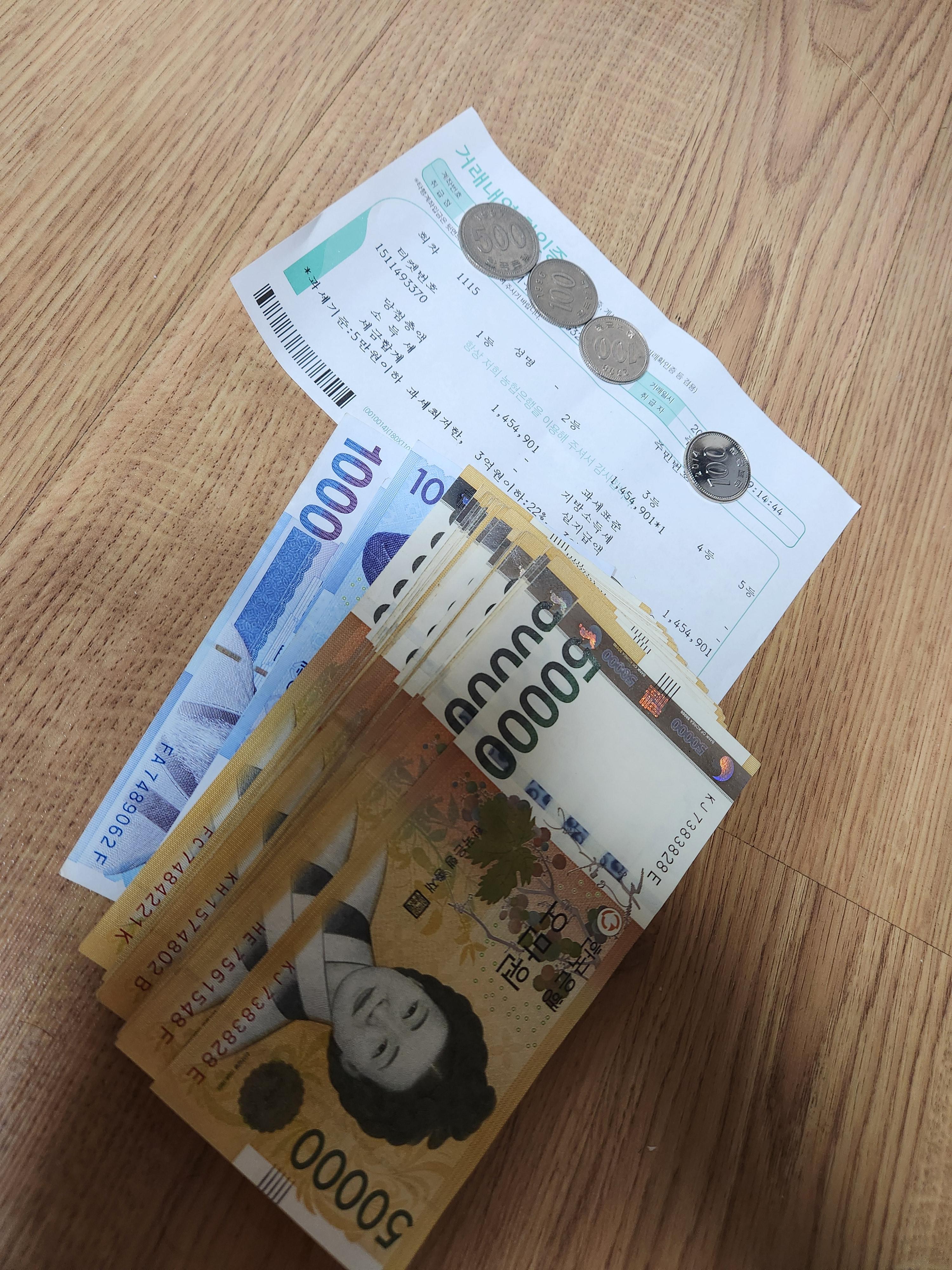 지폐 뭉치를 받으니 정말 기분이 묘합니다. 이번 회차의 3등 당첨금은 145만 4901원인데, 5만원짜리 지폐 29장의 두께가 꽤 두텁다는 것을 직접 만져보고 느꼈습니다.