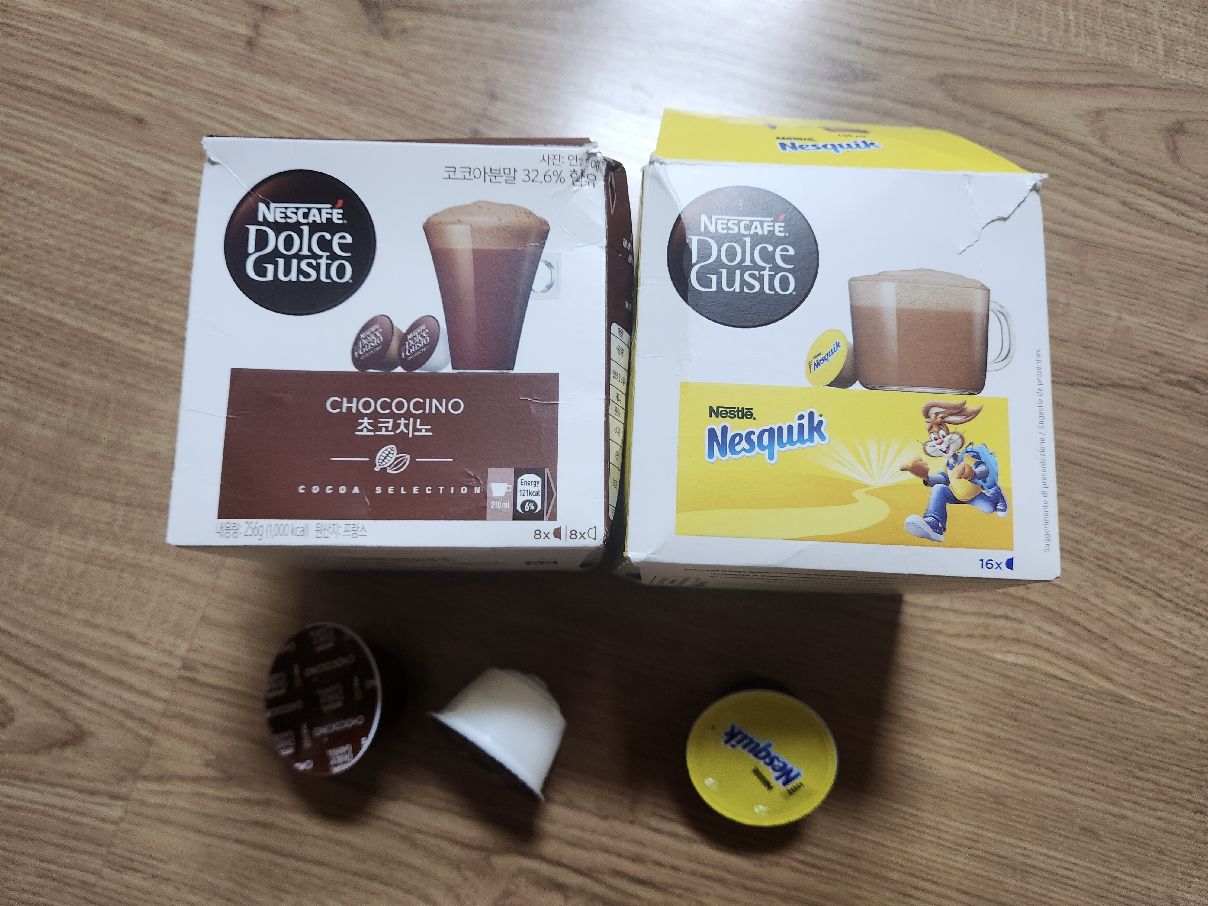 이렇게 네스카페 돌체구스토 공식 캡슐로 나온 두 초코캡슐을 비교해봤습니다. 참고가 되었으먄 좋겠습니다.