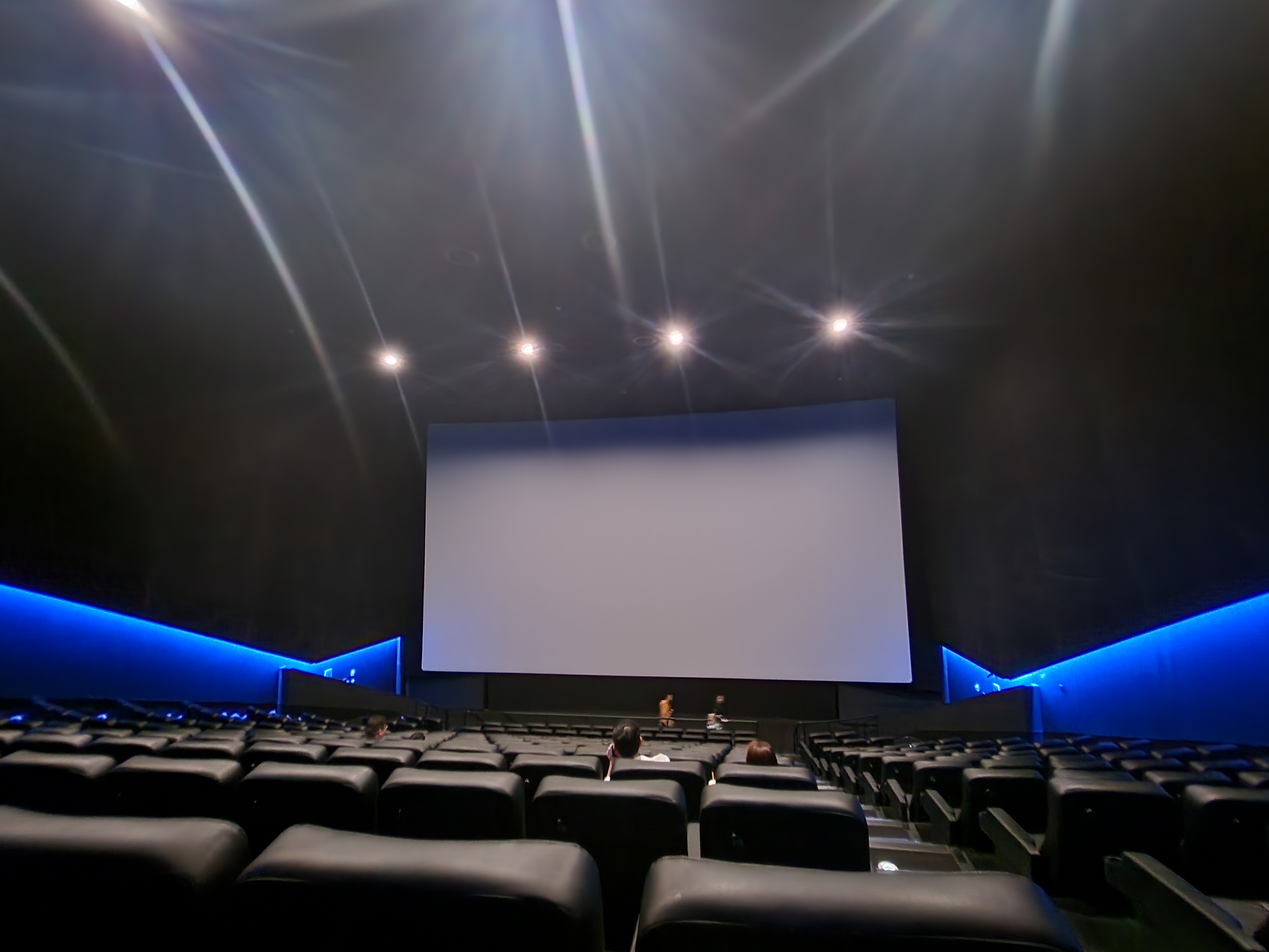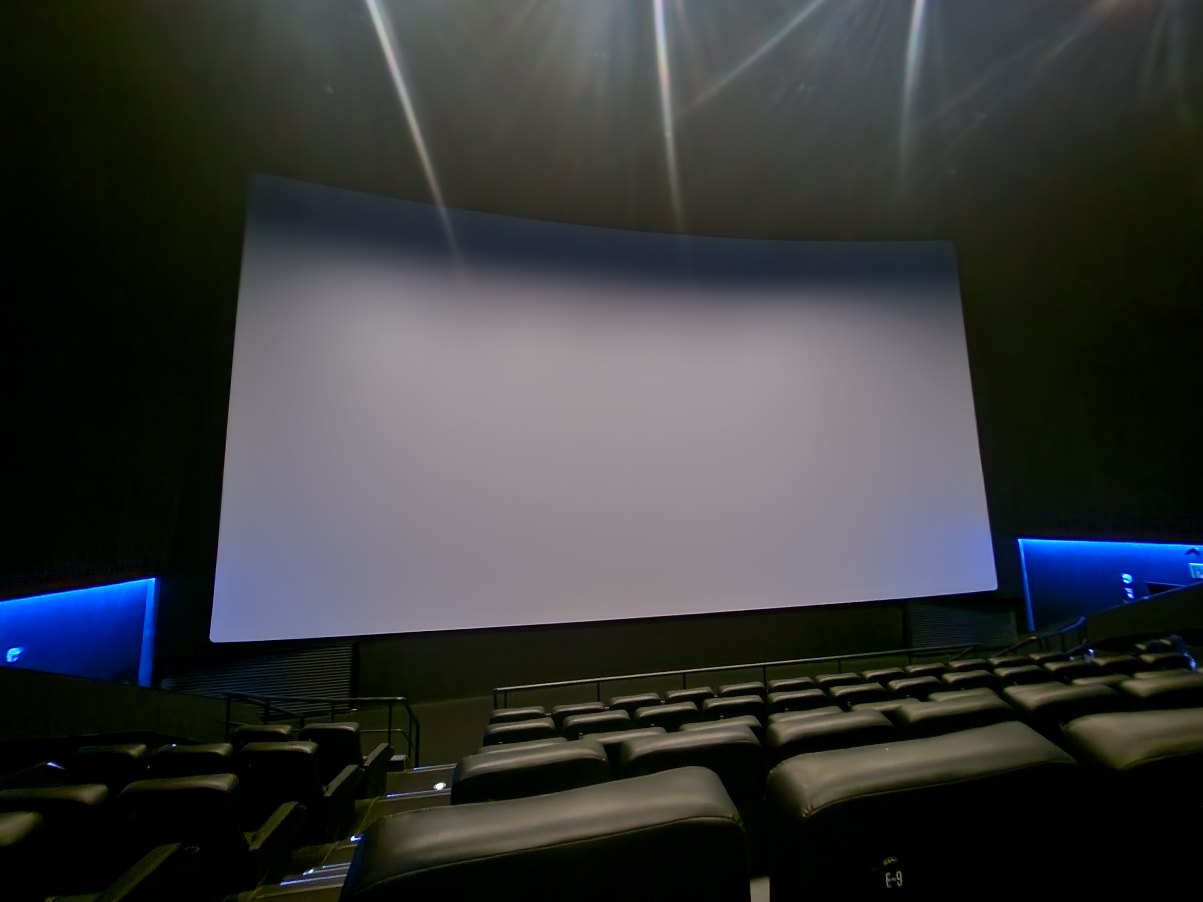 게다가 스크린과 좌석간의 거리가 상당히 가깝습니다. 크기도 크기인데 거리도 가까이에 있기 때문에 실제로 실관람을 했던 F열도 제가 생각했던 것보다 훨씬 더 꽉차게 들어옵니다. 시선이 일치되는 구역은 h,I열 정도였습니다. 워낙 좌석과 스크린이 가깝고, 스크린이 크고 나름 또 상단에 배치되어 있습니다. 그렇기 때문에 시선일치가 되는 구역도 상당히 뒷편이라고 할 수 있습니다.