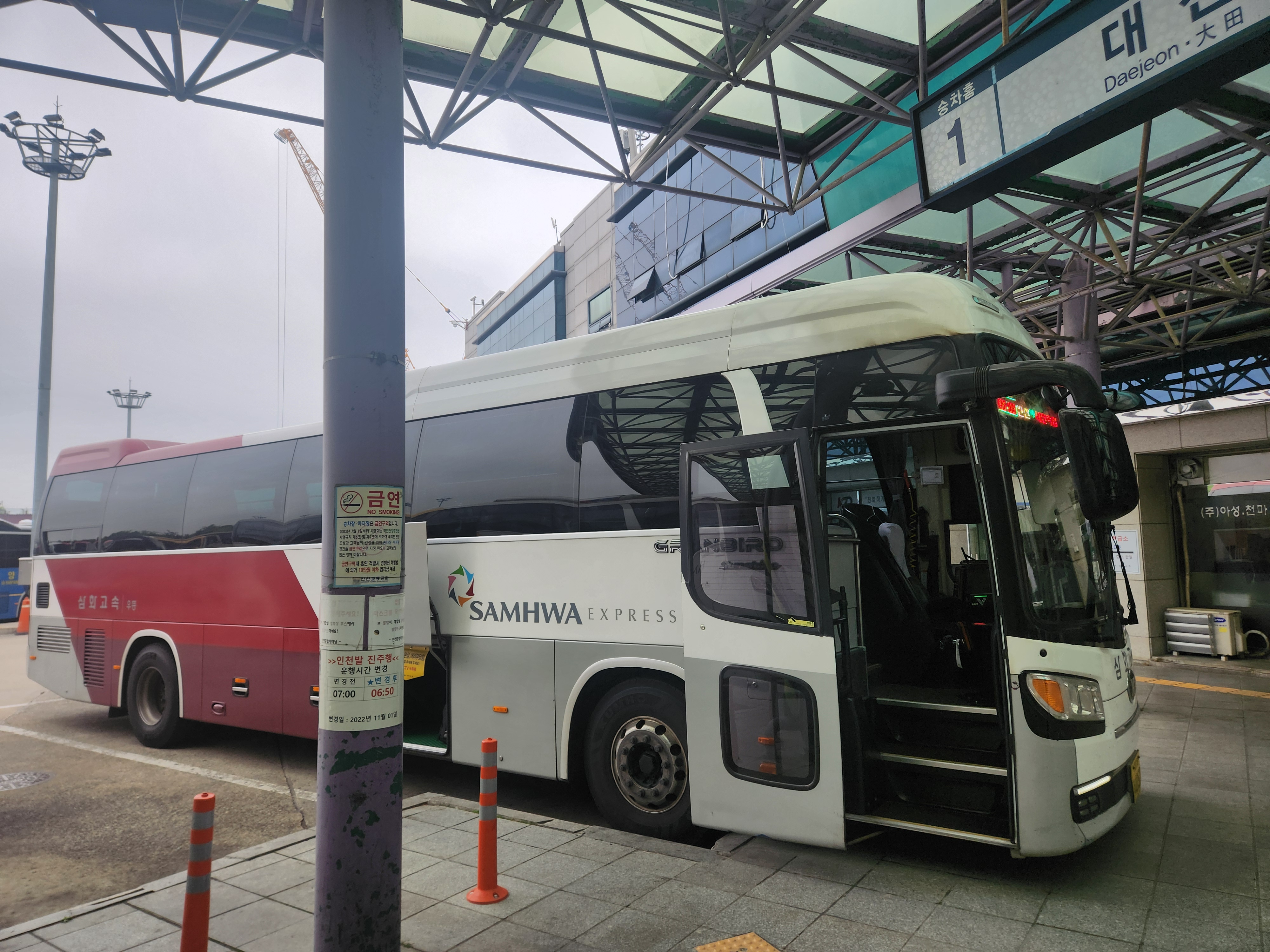 특이한 점은 인천터미널의 1번홈은 대전으로 고정되어 있습니다. 그만큼 인천터미널에서 대전을 그만큼 많이 간다는 뜻이겠지요?
