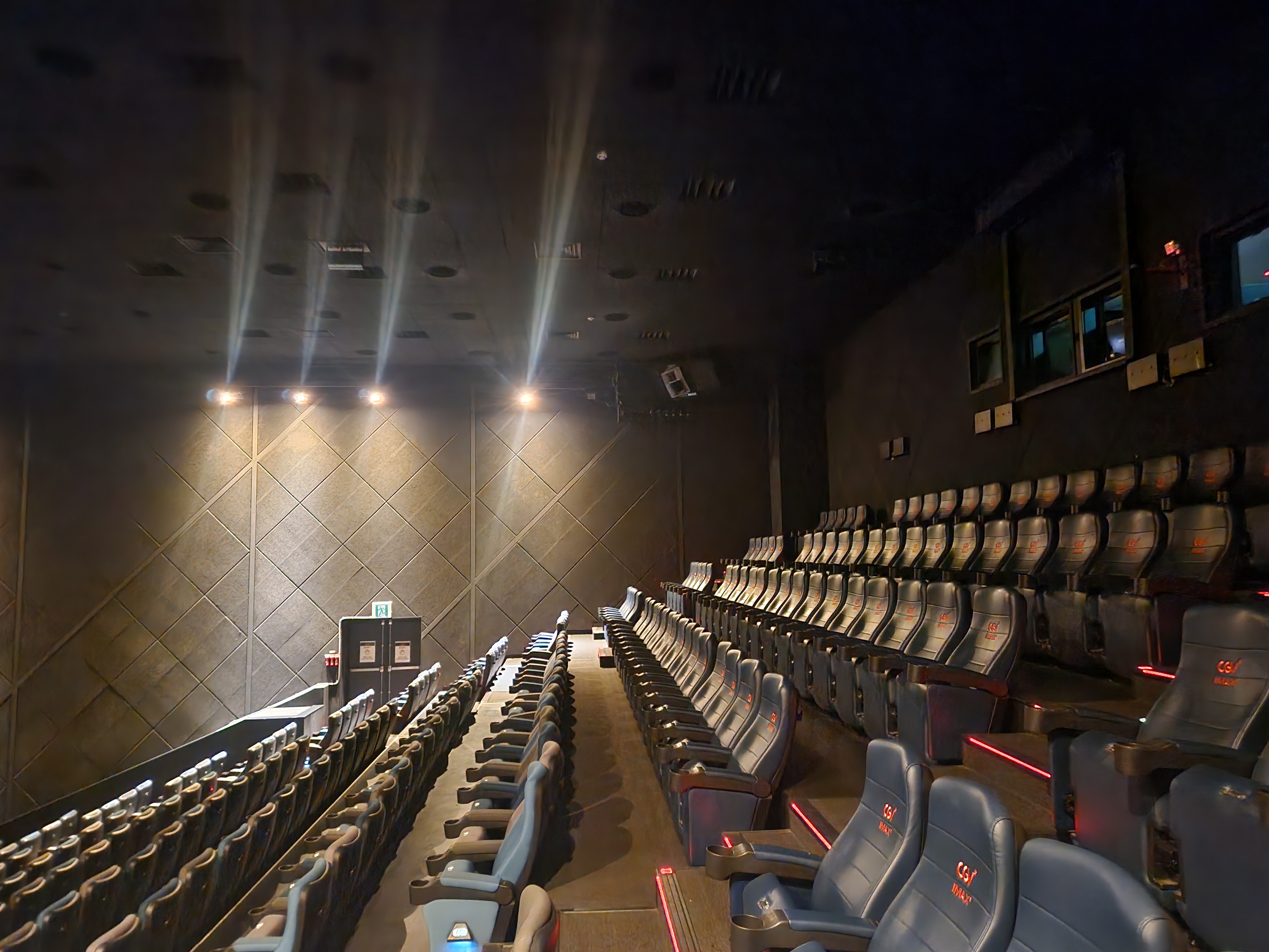 천장 양 끝쪽에 부착된 리어 스피커의 방향이 맨 뒤 두줄은 벗어나 있습니다. 다른 좌석들은 소리가 앞 뒤로 둘러싸는 공간감이 형성되겠지만 이런 형태의 스피커 배치상 맨 뒤 두 줄은 모든 소리가 앞쪽에 맺히는 것처럼 들리기 때문에 음향적인 면에서 손해을 볼 수 밖에 없습니다. 최대한 이 두 줄은 피하시는 게 좋겠습니다.