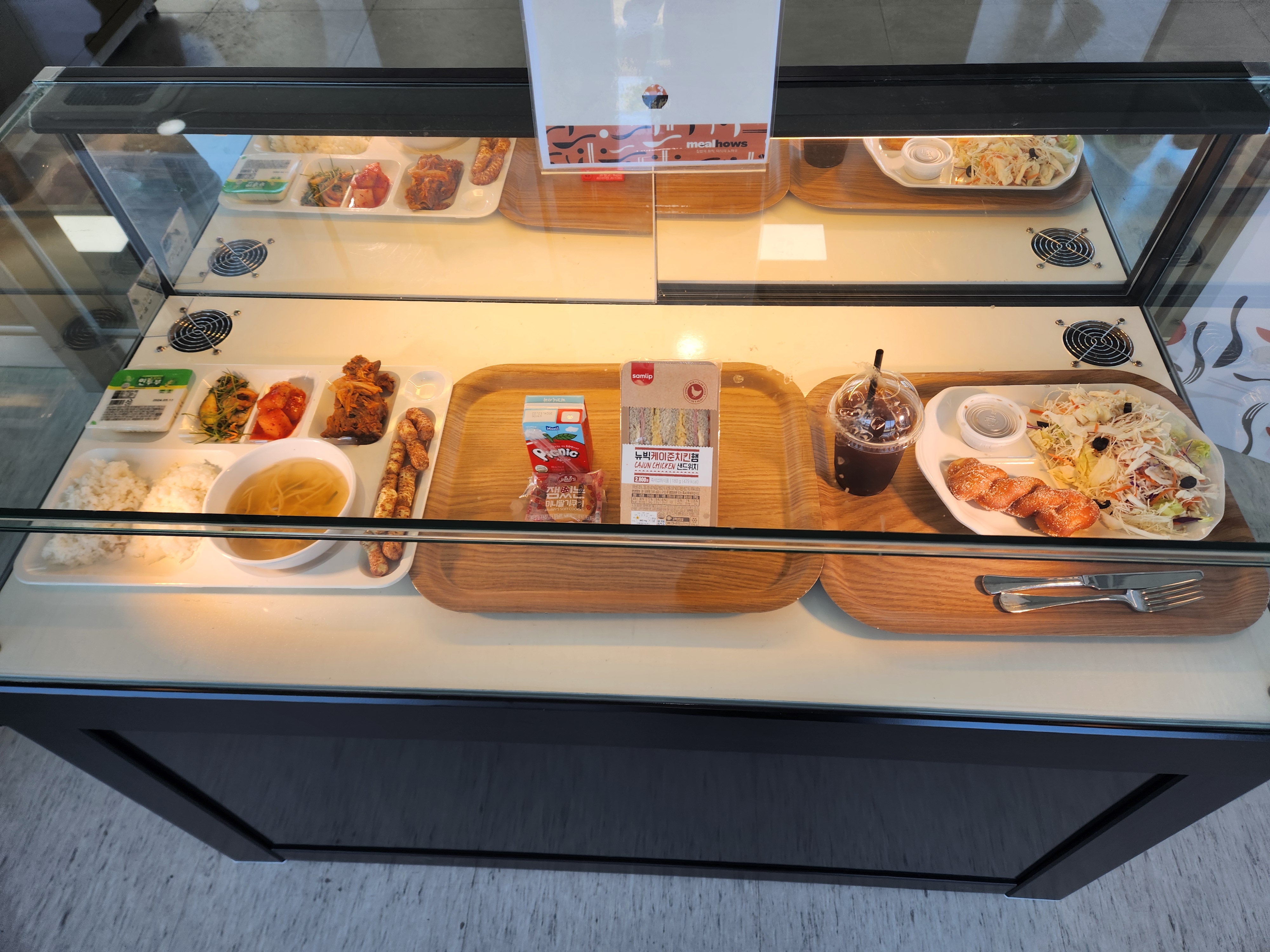 밥은 크게 위의 사진처럼 일반 밥, 간편식, 샌드위치, 라면 이렇게 4가지 메뉴가 있고, 사원증을 찍어서 먹으면 됩니다.