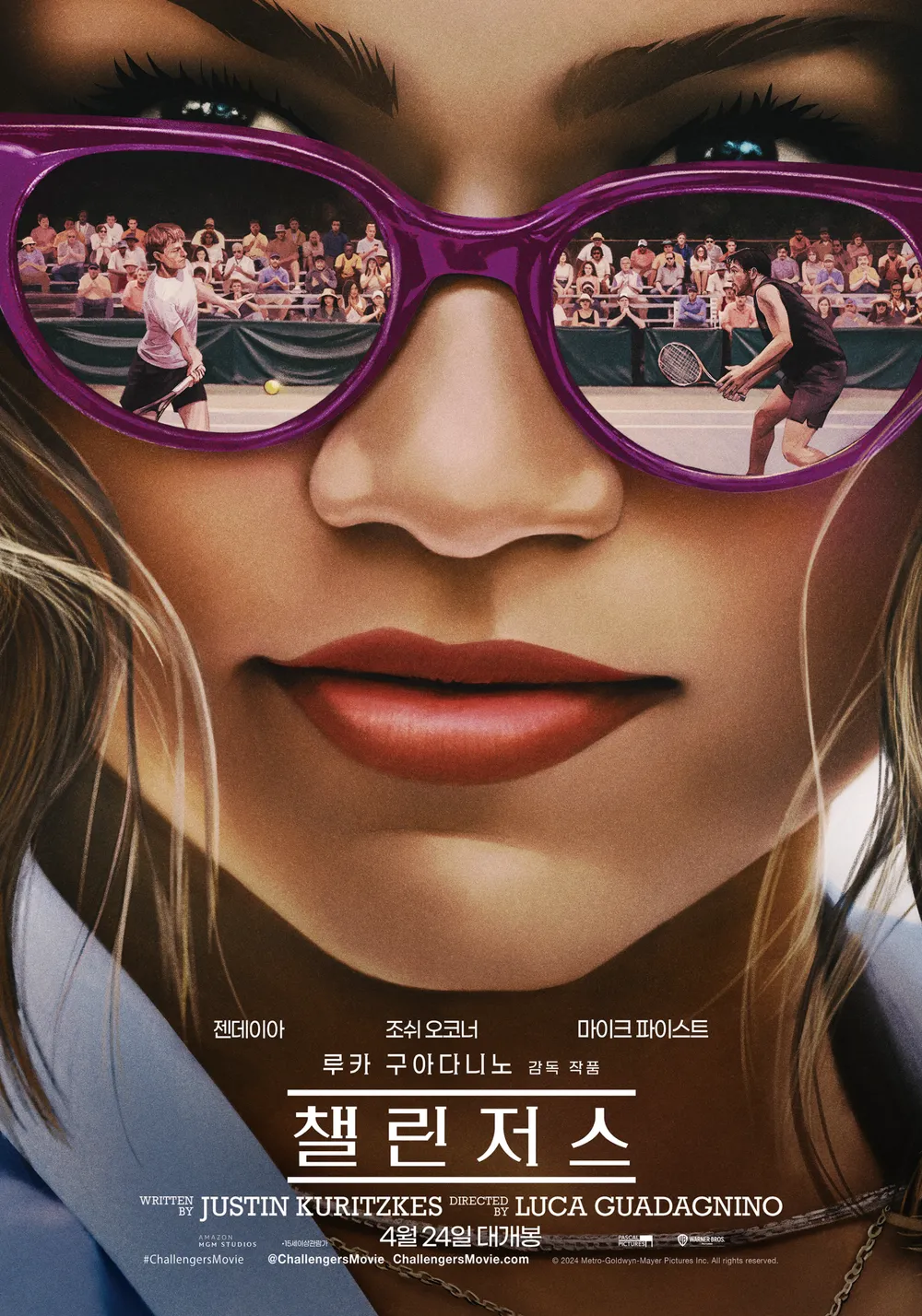 이번에 관람한 영화는 배우 젠데이아, 조쉬 오코너, 마이크 파이스트가 주연으로 하며, 루카 구아다니노 감독의 신작 영화인 챌린저스를 관람하고 왔습니다. 한국에선 지난 2024년 4월 24일에 정식 개봉했습니다. 해외에서는 아이맥스 포맷으로도 개봉했지만 한국에선 아쉽게도 일반 상영관으로만 상영되었습니다.