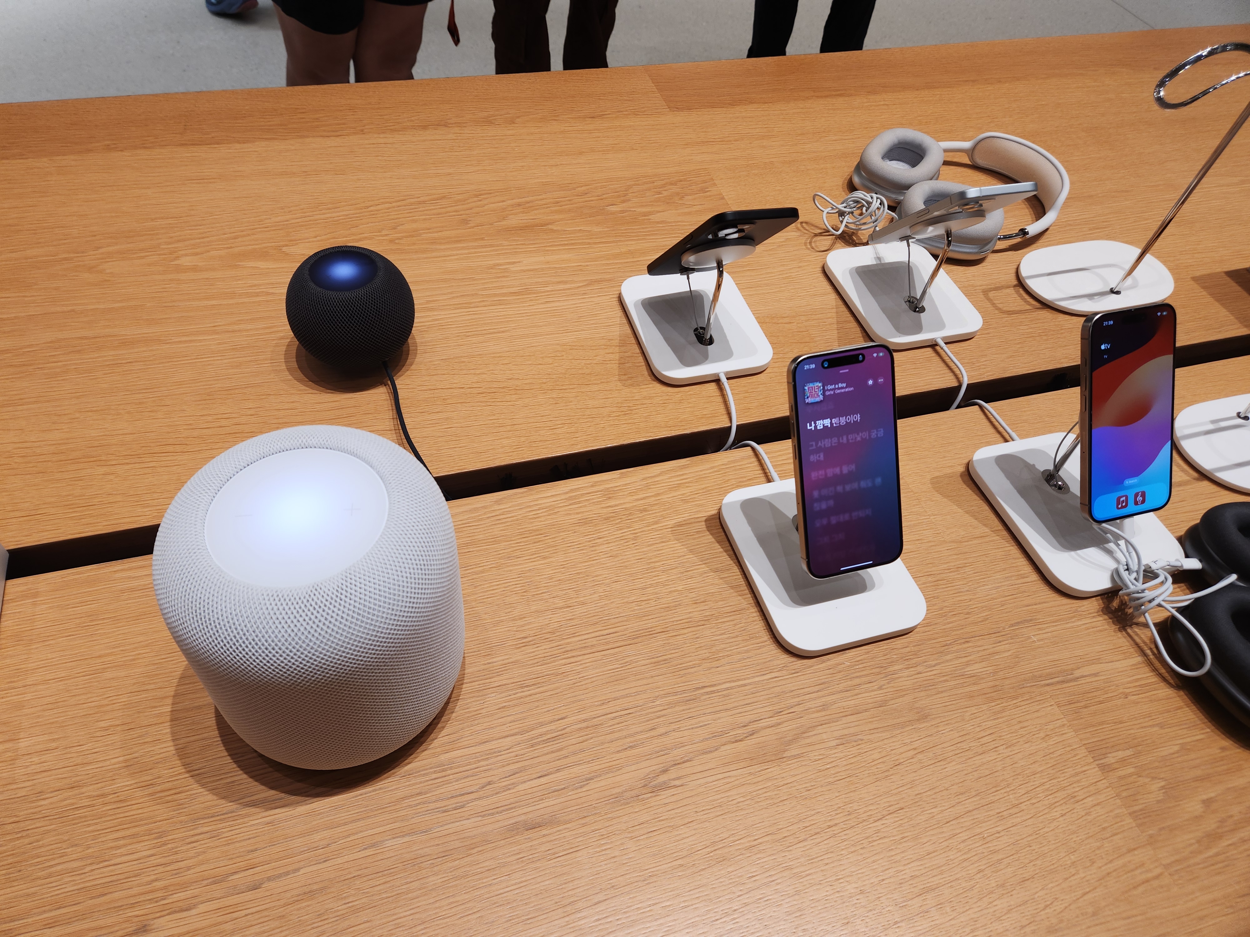 한국에서 왔다고 하니까 바로 애플뮤직을 K팝 음악으로 틀어줍니다. 매장 마감 시간에 손님이 별로 없는 가운데 이 곳 애플스토어 전체에 쩌렁쩌렁 홈팟으로 Kpop이 흘러나왔습니다.