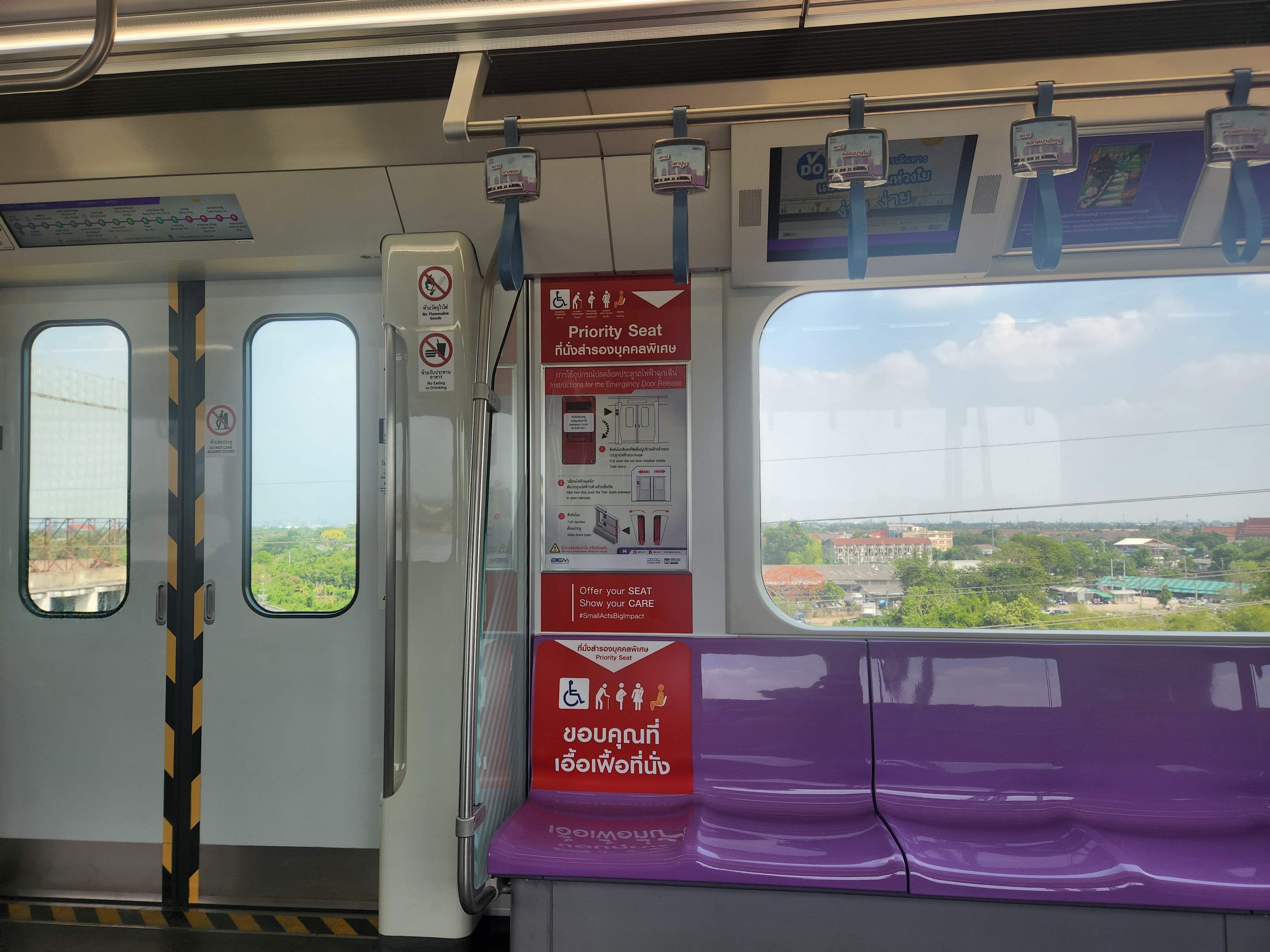 비교적 신형인 열차의 모습입니다. 보통은 방콕 도시철도가 4량 1편성인데 퍼플라인은 3칸으로 운행됩니다.