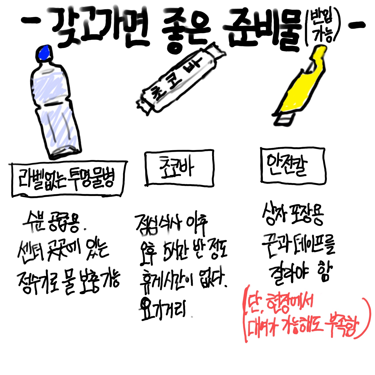 핸드크림 : 물류창고에 들어가서 작업하기 전에 바르면 정말 좋습니다. 집품 과정에서 손 피부가 꽤 건조해집니다.