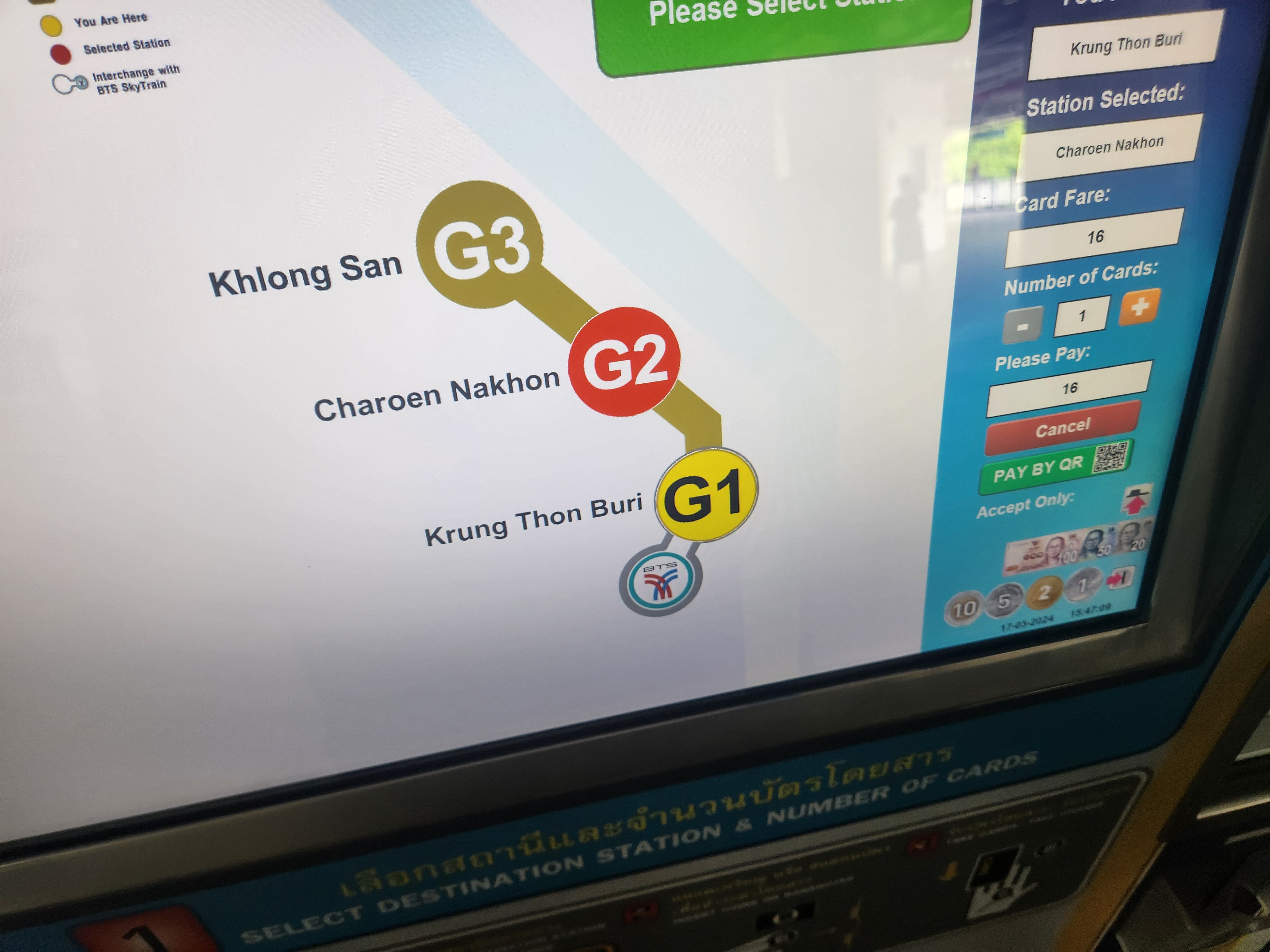 크룽톤부리역에서 아이콘시암이 있는 짜런나컨역까지는 16바트입니다. 거의 그냥 기본요금 수준입니다. 어차피 역 한 개 가는 것 뿐입니다.