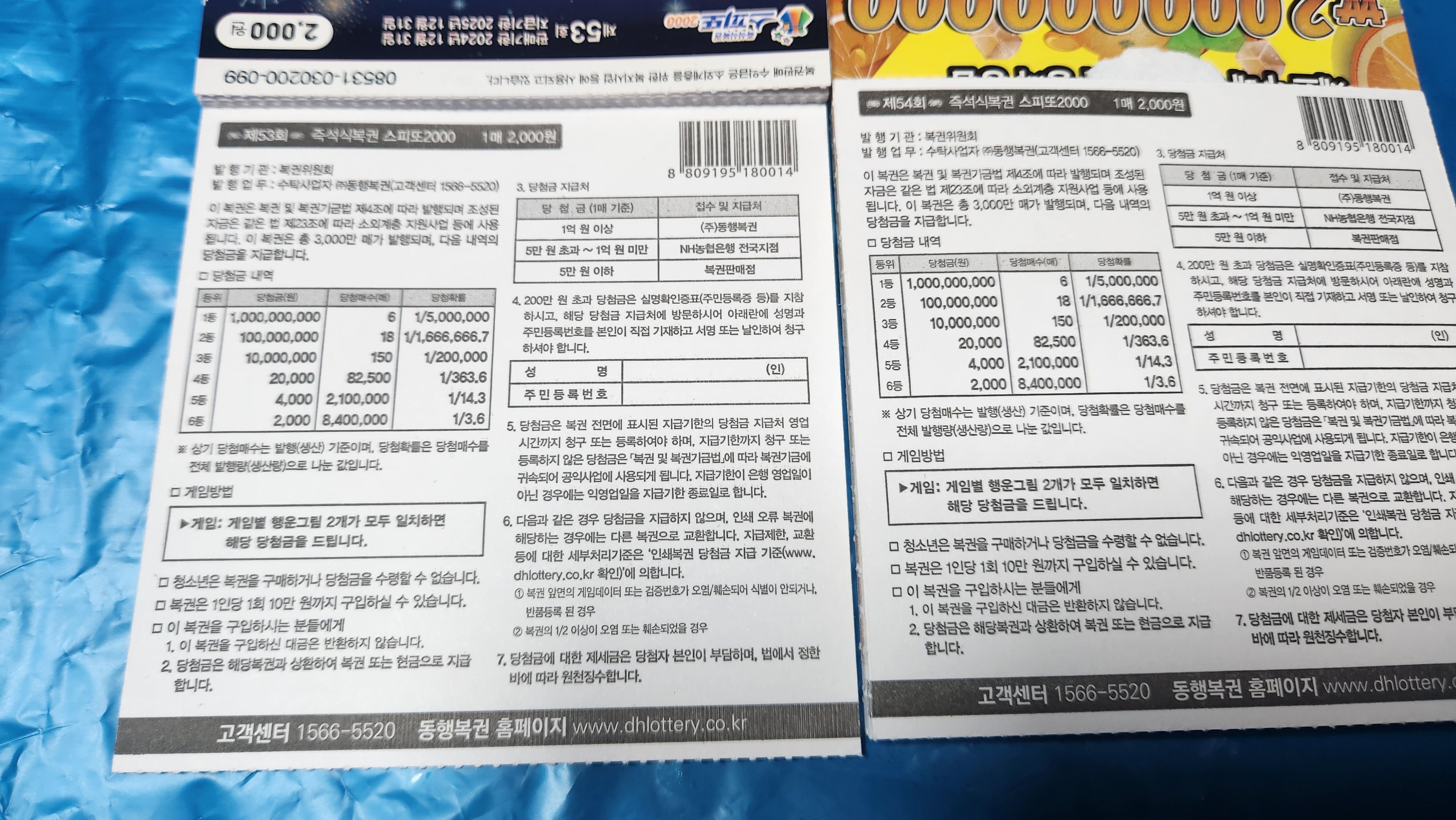 동네 판매점에 갔을 때 53회가 얼마 남지 않아서 54회도 같이 구매했습니다.