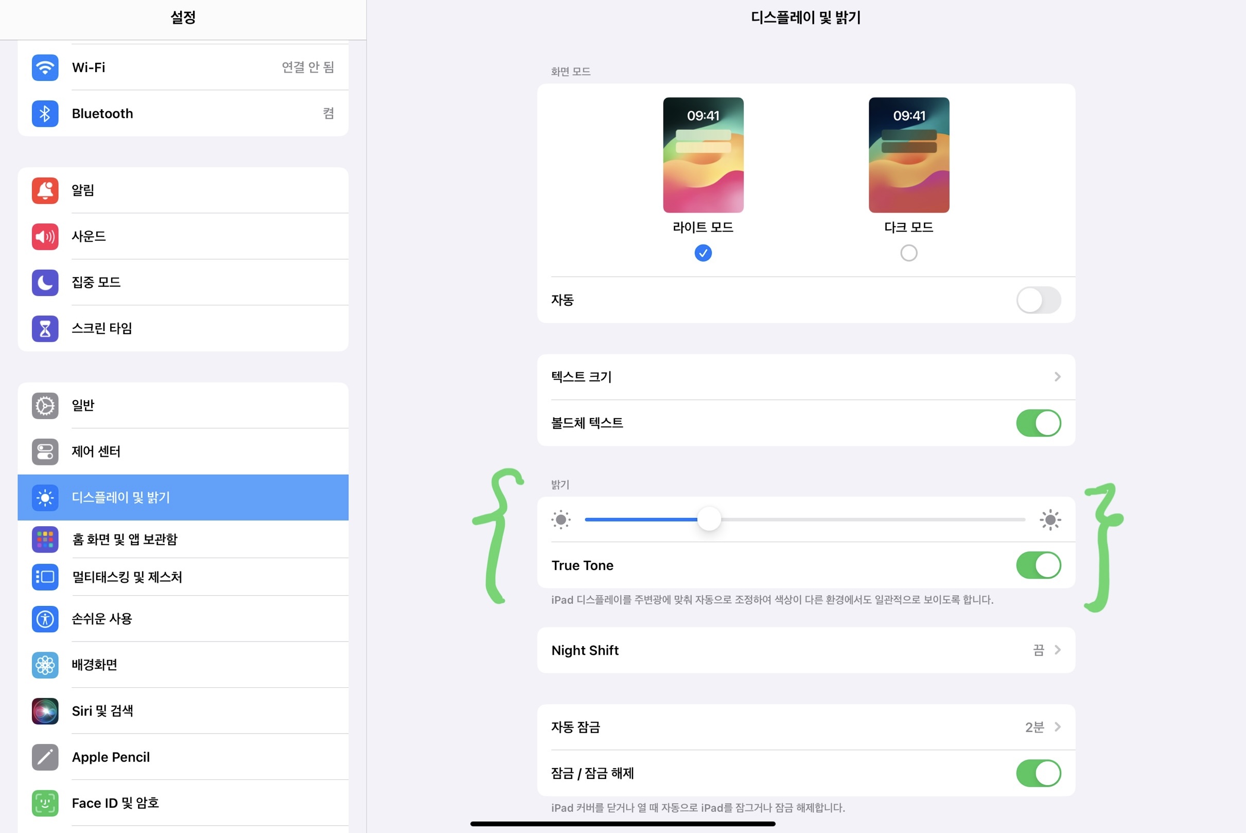 일단 이번 OLED 아이패드 디스플레이에 대한 설정들은 무엇이 있는지 간단하게 정리해봤습니다.