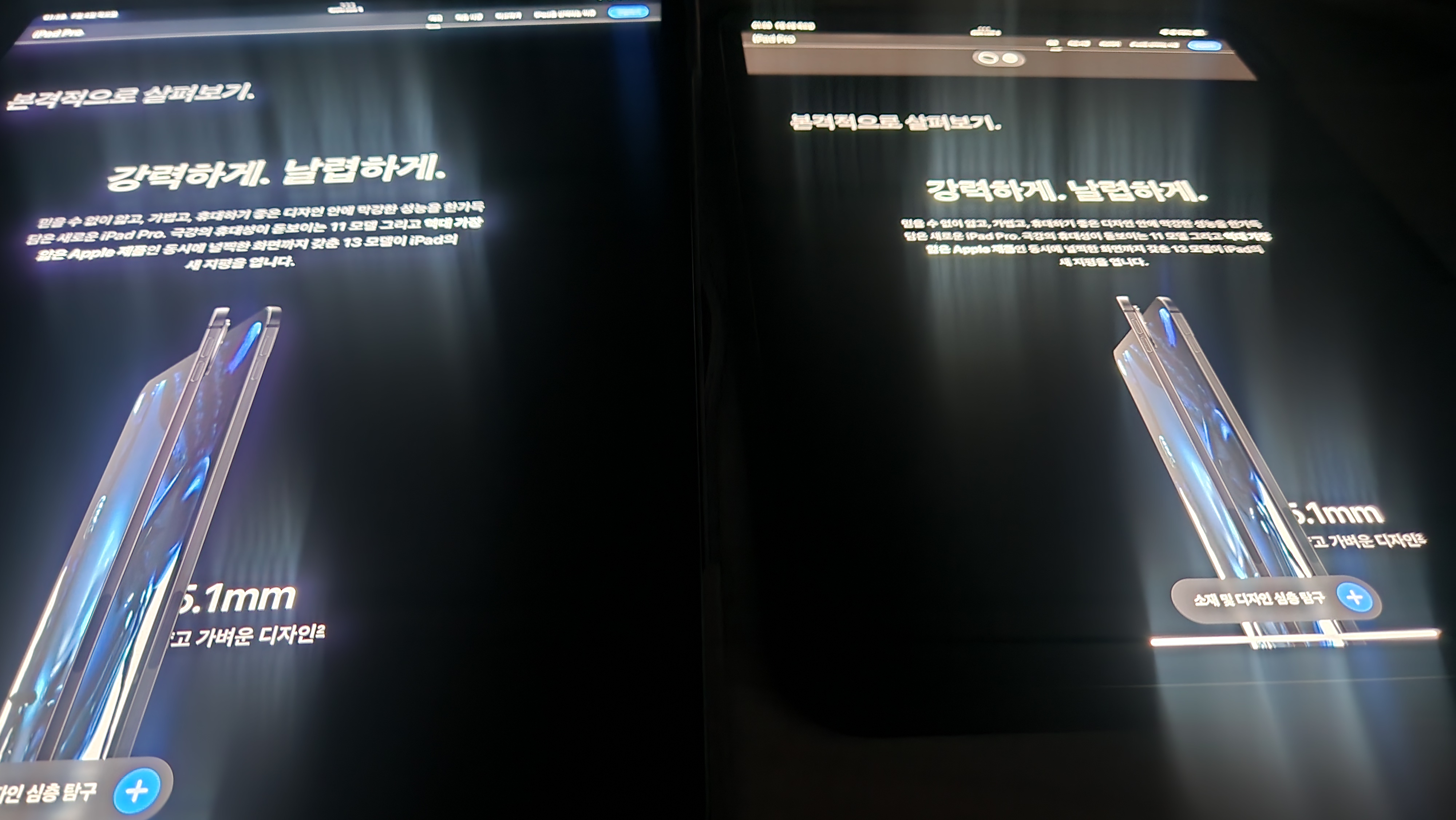(위의 사진들은 두 패드 모두 동일한 색상 설정으로 맞춰놓고 비교한 사진입니다.)