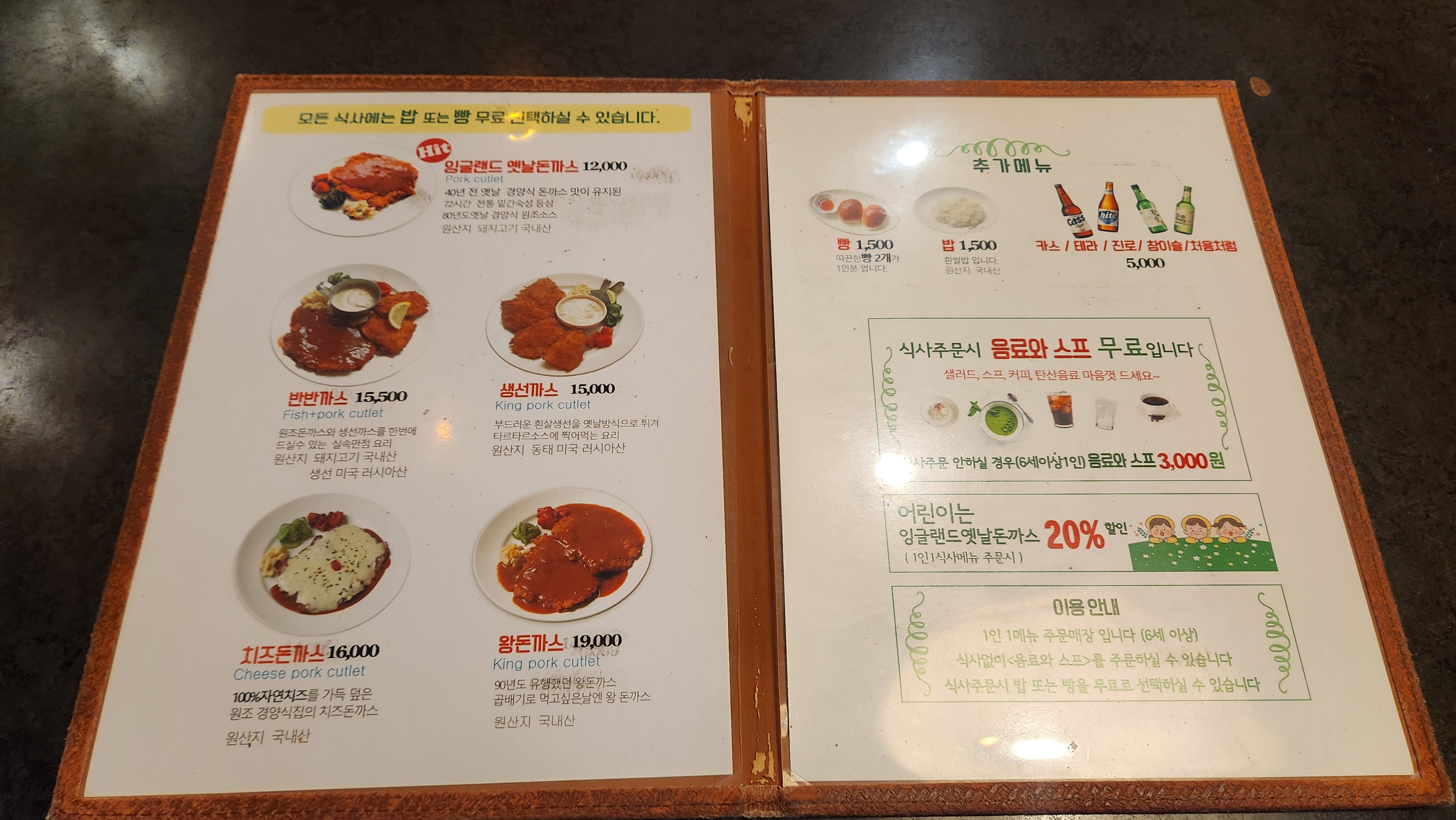 일단 가장 대표적인 잉글랜드 옛날돈까스가 1만 2천원,