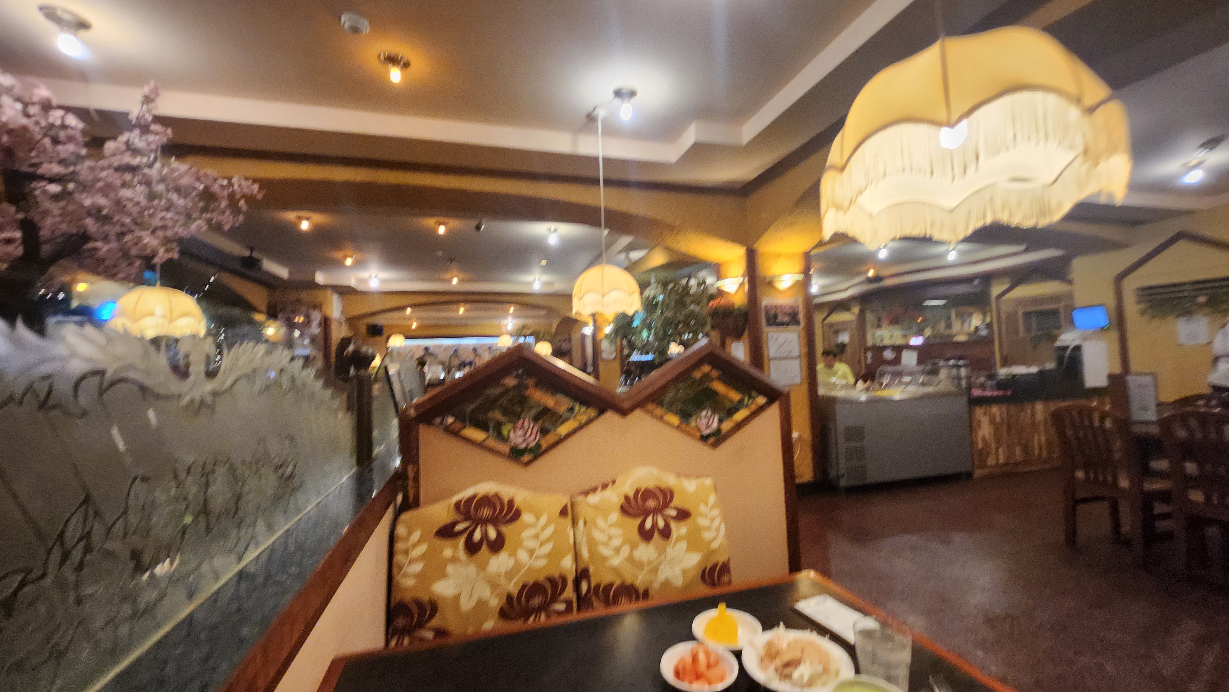 생각보다 가게 규모가 꽤 큰 편입니다. 가운데엔 분수대가 있었고 넉넉잡아 30테이블이 배치된 느낌입니다. 그것도 최소 4인 이상이 앉을 수 있는 규모의 테이블이었습니다. 혼자 간 손님은 당시에 저 혼자 뿐이었고 나머지는 최소 둘 이상이거나 가족분들이 오셨습니다. 브레이크 타임이 끝난 오후 5시를 조금 넘긴 시각에 찾아가서 그나마 한산한 내부 모습을 담을 수 있었지만, 6시가 되기도 전에 이미 거의 대부분의 테이블에 손님이 가득했습니다.
