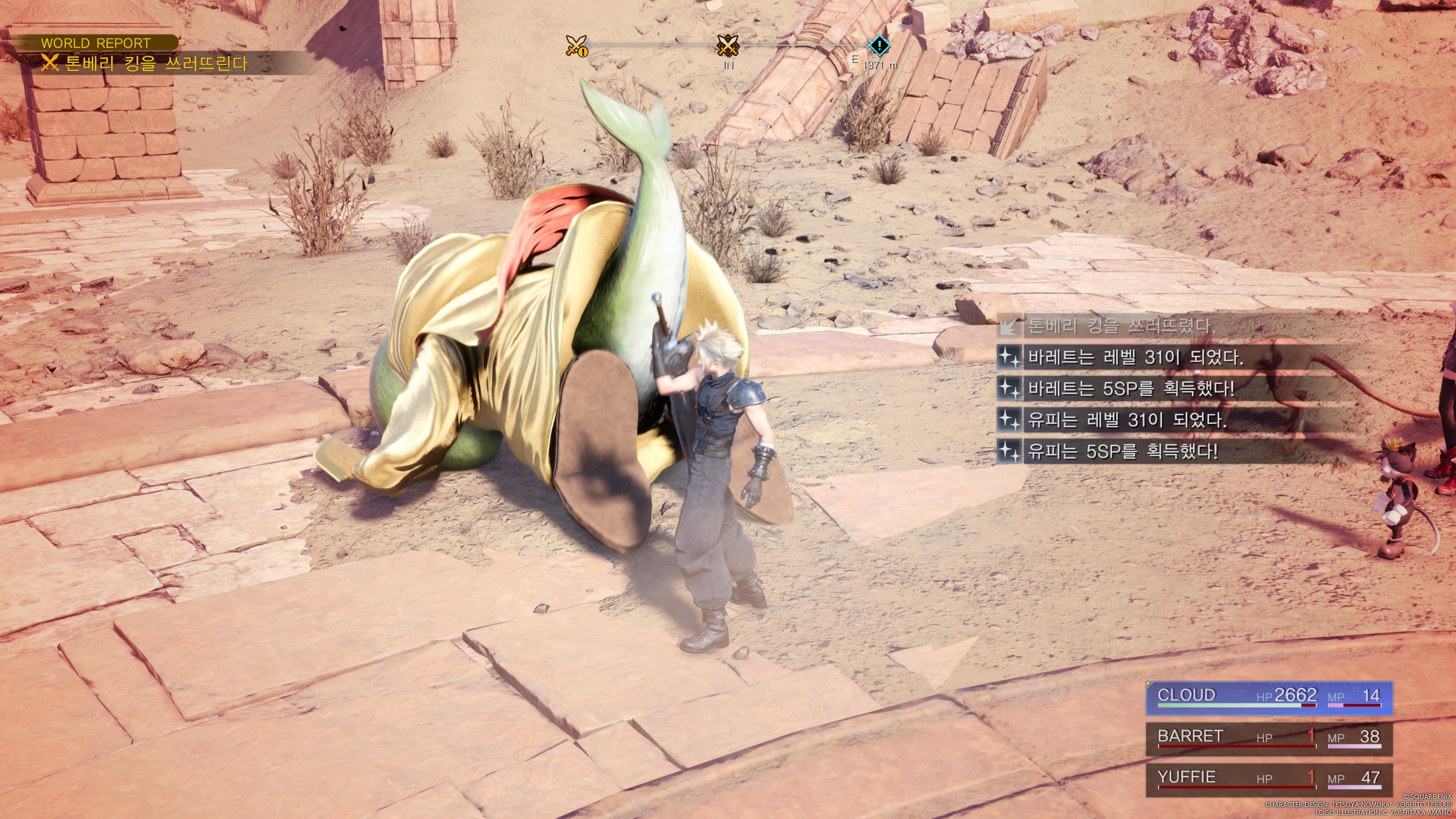 결론은 플스4프로 런칭작으로 출시된 파이널판타지 15부터 지금까지 출시된 파판 정식 넘버링 시리즈들 중에서 가장 재밌게 플레이를 했습니다. 오픈월드를 워낙 잘 만들었기 때문에 오히려 메인스토리보다 필드 탐험을 더 많이 했습니다. 여태 제가 콘솔게임을 하면서 중반 이후부터 ‘물린다’는 느낌이 있었습니다. 심지어 작년에 출시된 젤다의 전설 왕국의 눈물조차도 중반부터 물린다는 느낌이 있었지만 이번 파판7리버스는 그런 느낌이 안들었습니다.