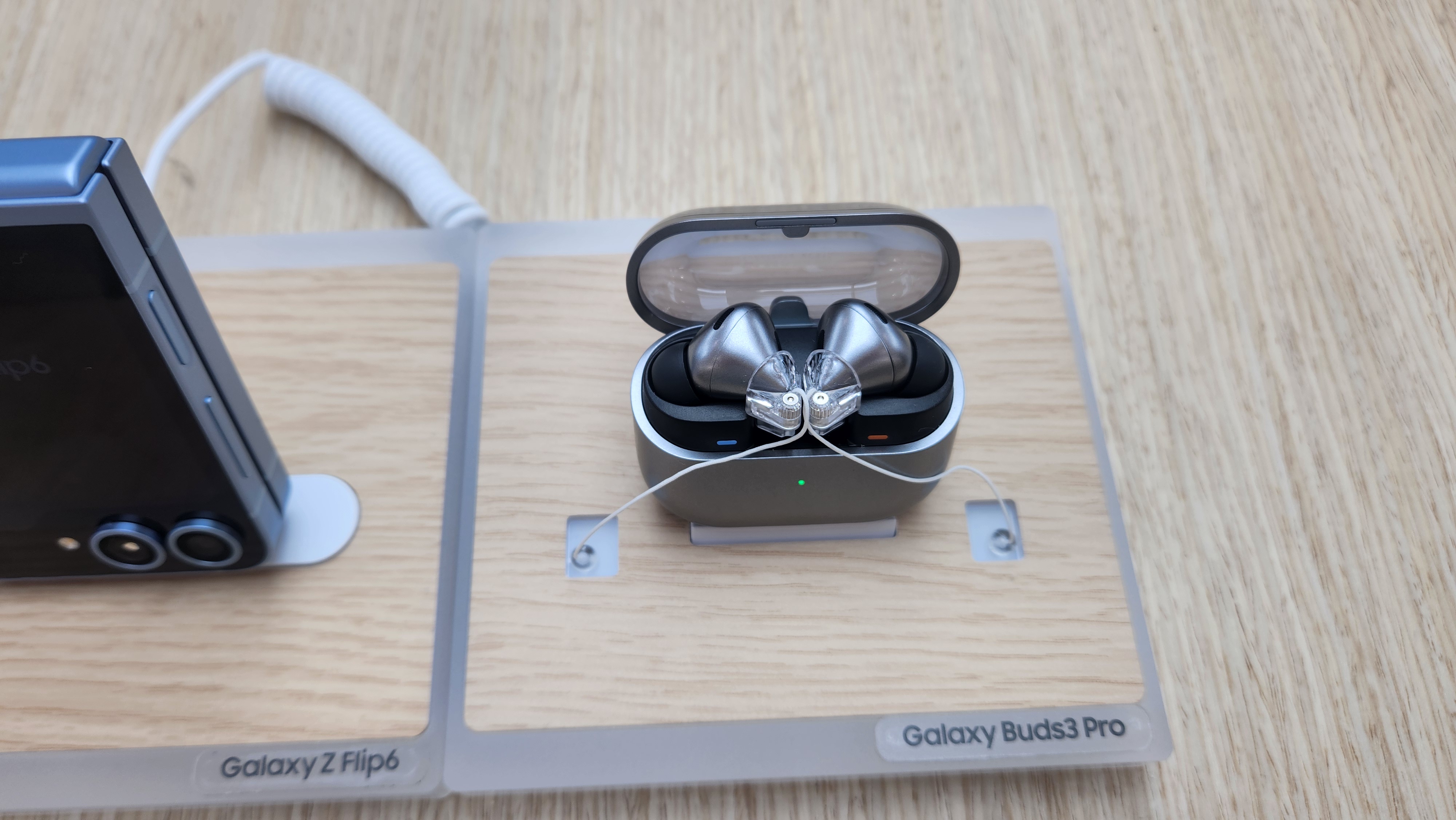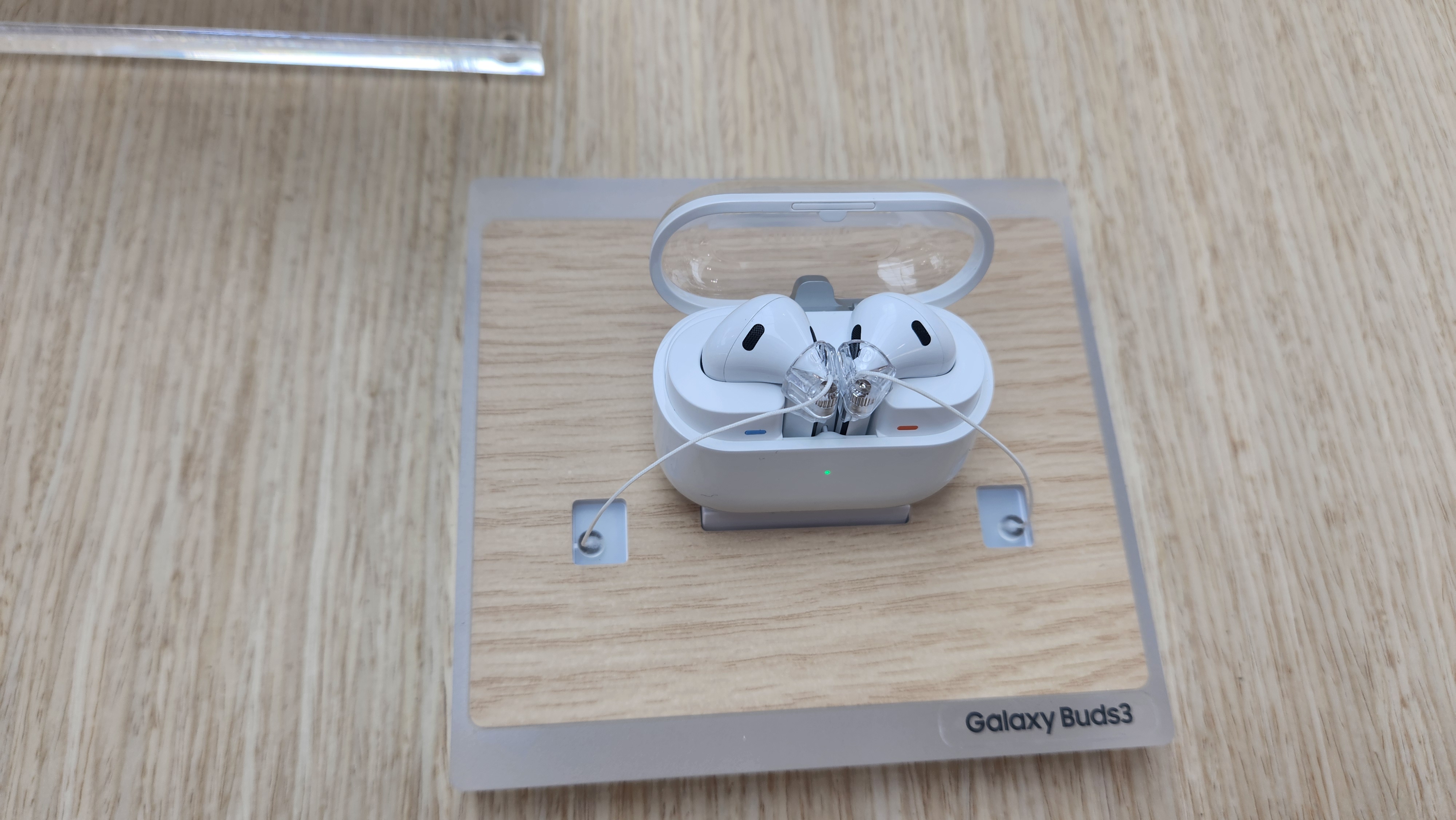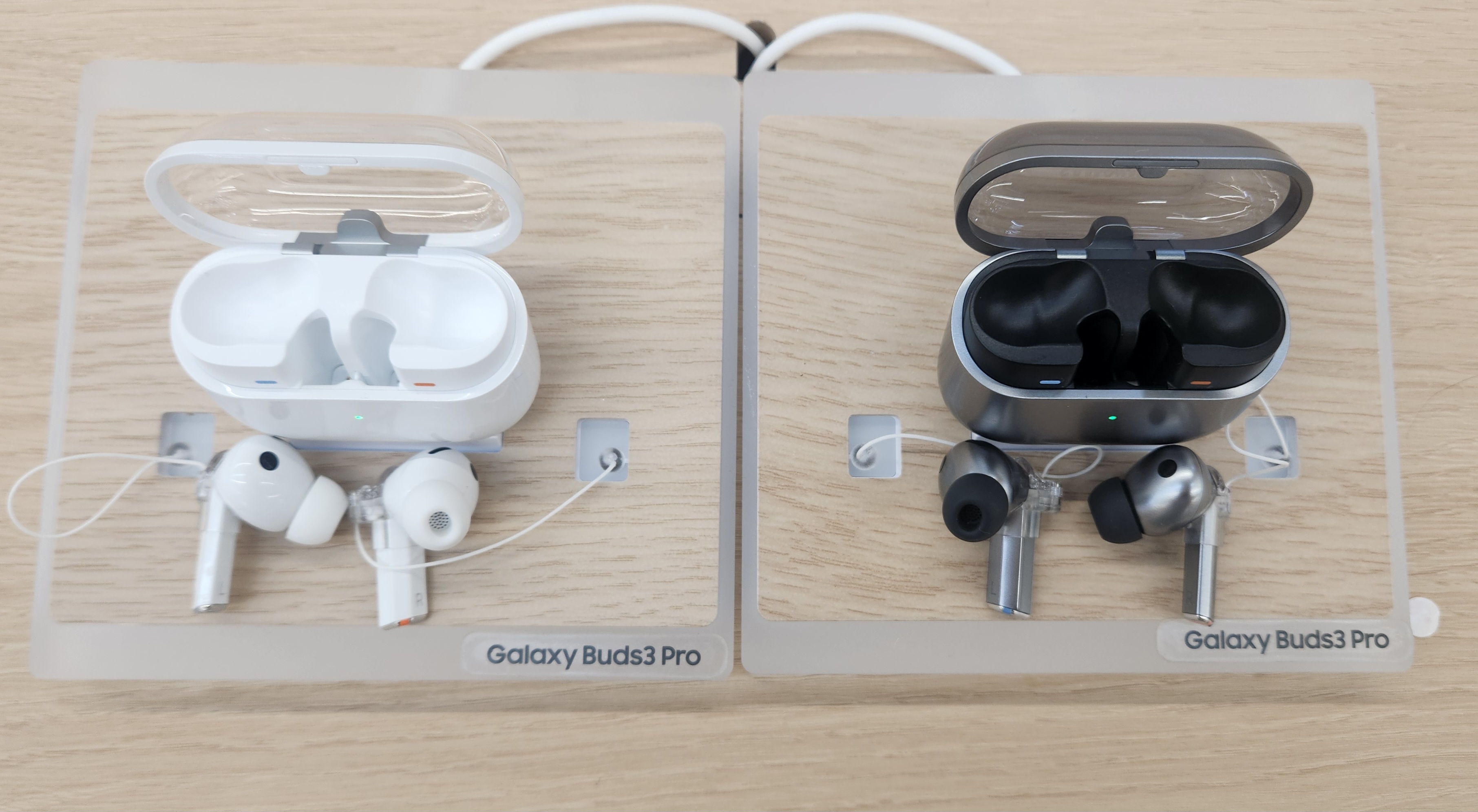 일반 버즈3는 그냥 플라스틱 몸체가 구멍에 걸쳐진 방식이라 책상에서 나온 줄이 땡겨져 사실상 착용 불가 상태가 되었습니다. 제가 오늘 두 군데의 삼성프라자를 갔는데 두 곳 모두 버즈3를 청음하다가 다들 책상으로 유닛을 계속 떨어뜨리는 모습을 봤습니다. 차라리 아예 여유가 있는 줄로 유닛에 부착을 했다면 좋았을텐데 좀 아쉬웠습니다.