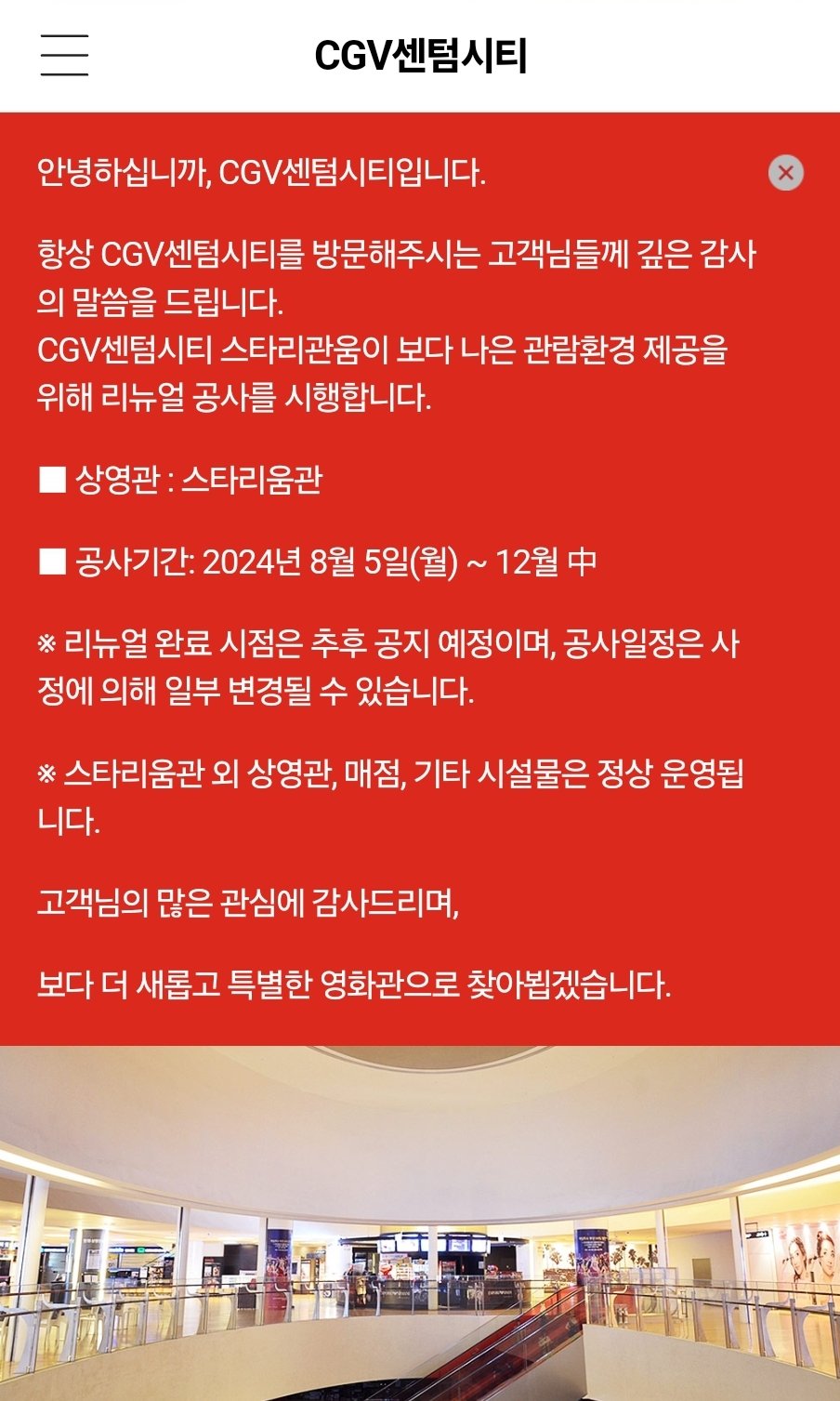 이상 CGV 센텀시티 스타리움관의 리뉴얼 공사 예정 소식이었습니다.