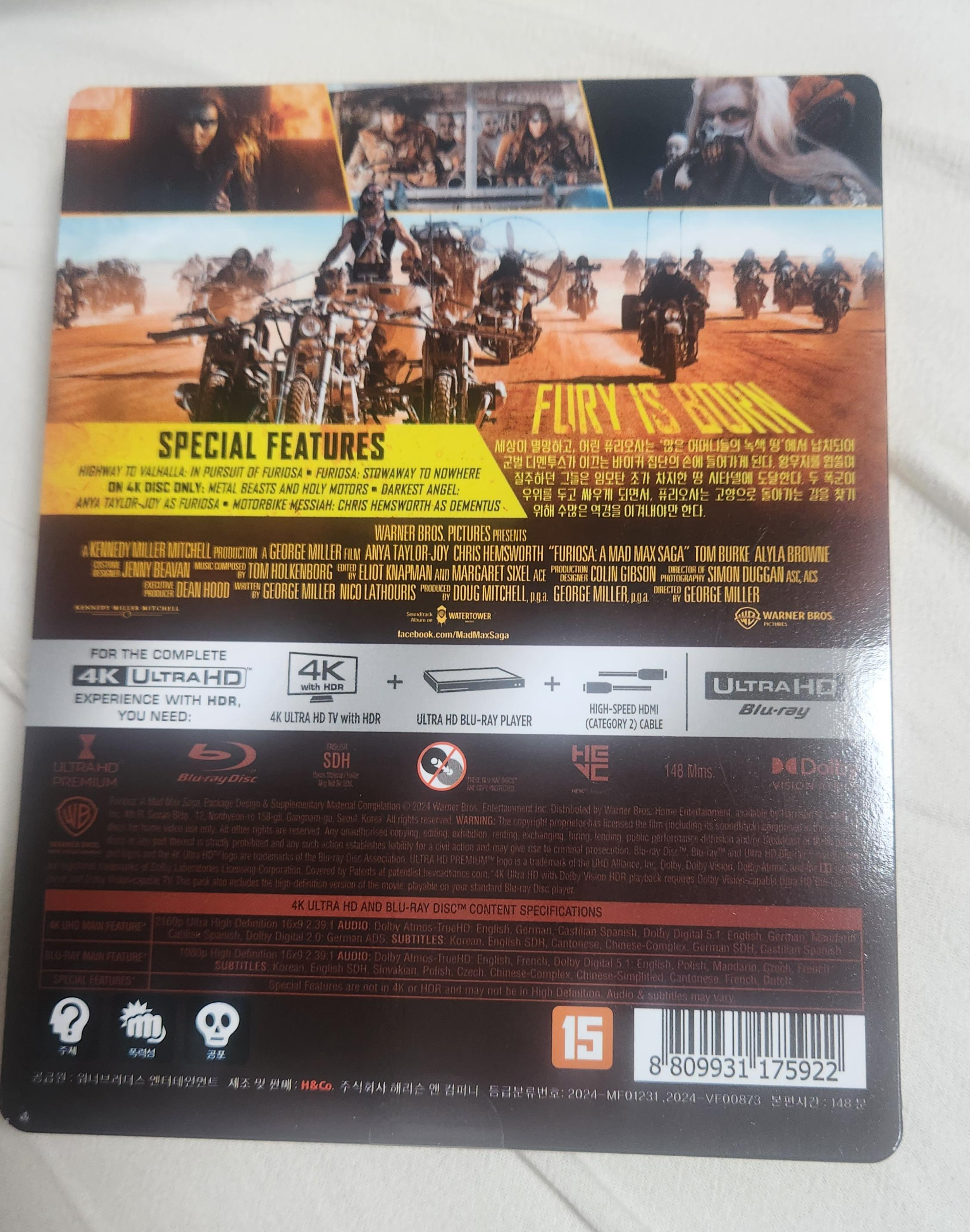 지난 5월 개봉한 영화 퓨리오사:매드맥스 사가의 4k uhd 블루레이가 정발이 되었고