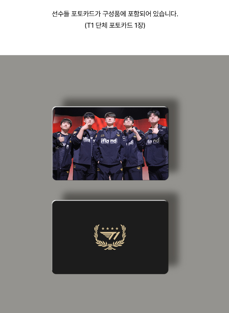 T1선수들의 단체 포토카드와 보증서가 포함되어 있습니다.