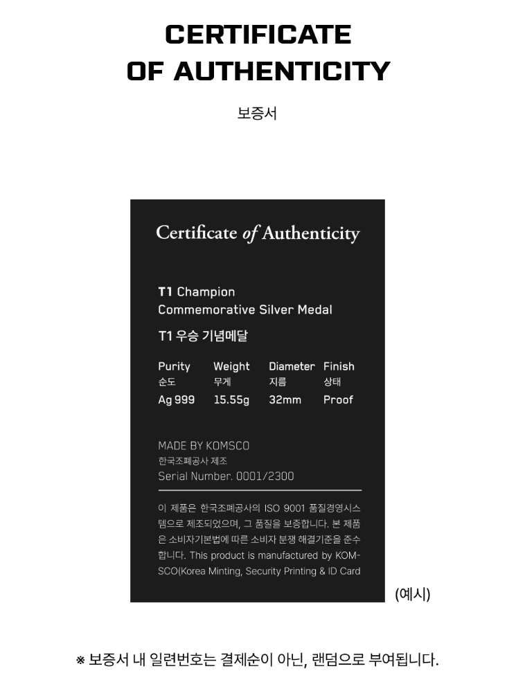 보증서에 있는 일련번호는 결제순서가 아닌 랜덤, 무작위로 부여된다고 합니다.