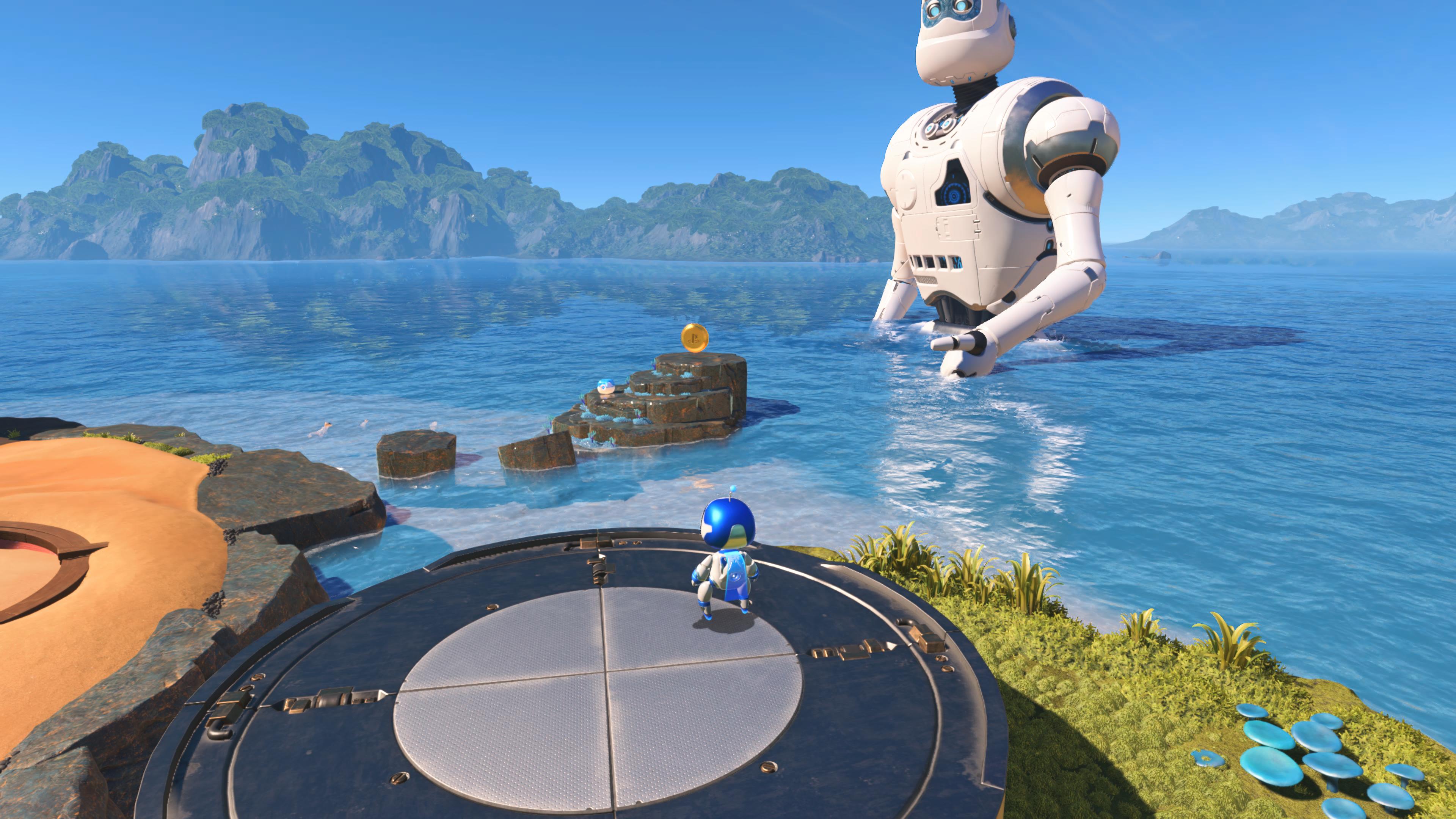 듀얼센스 이외에도 기본적으로 아스트로봇의 게임 그래픽의 품질이 상당합니다. 풍경 뿐만 아니라 물이나 공 등 다양한 물리 효과의 작용에 감탄하시게 될 겁니다. PS5의 진정한 기술적인 위력을 느껴 볼 수 있습니다.