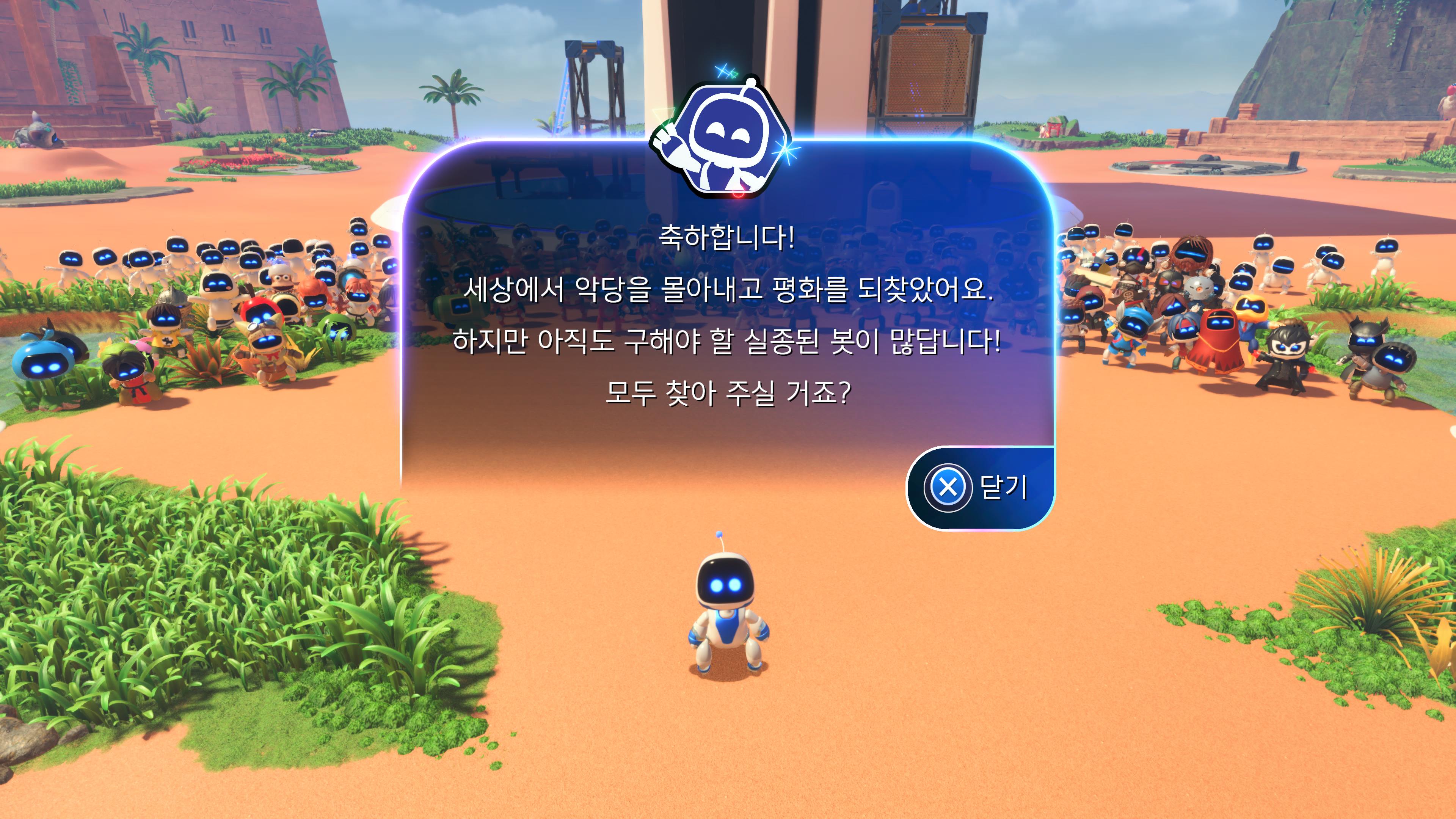이 게임을 해보려고 PS5를 구매하는 것은 추천하지 않습니다. 하지만 플스에 추억이 깃들어 있다면 적극 추천, 필구각인 게임입니다. 이상으로 아스트로봇을 클리어 한 후기였습니다.
