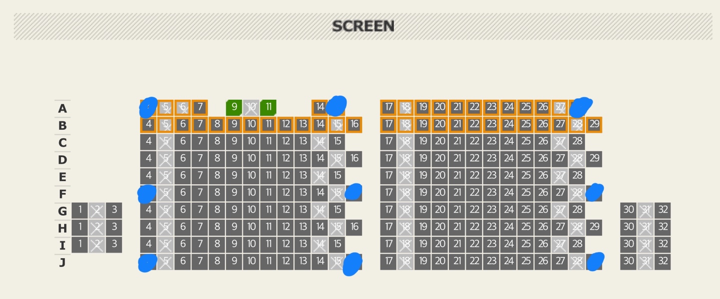 (실제로 좌석이 먼저 나가는 곳을 보면 맨 뒤 가운데인 I열, J열쪽부터 빠져나가는 경우가 많더라구요.)