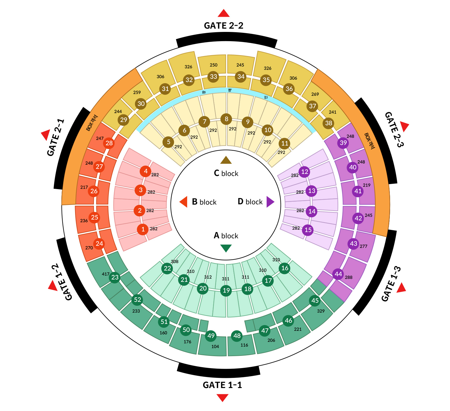 참고로 먼저 전체적인 Kspo돔 좌석도부터 보고 그 다음에 사진을 이어가도록 하겠습니다.