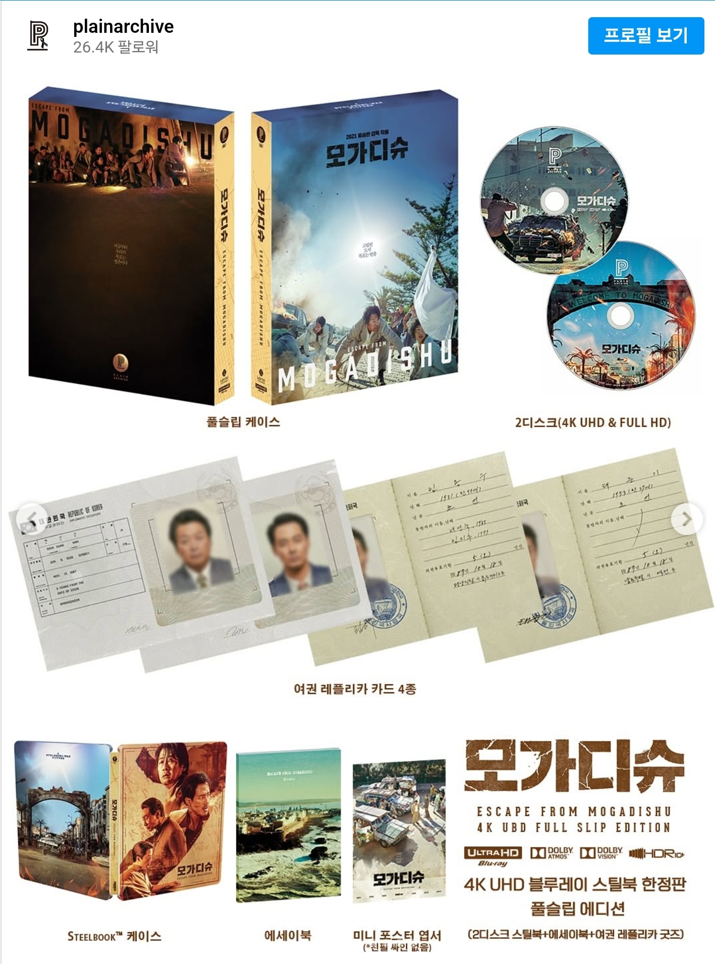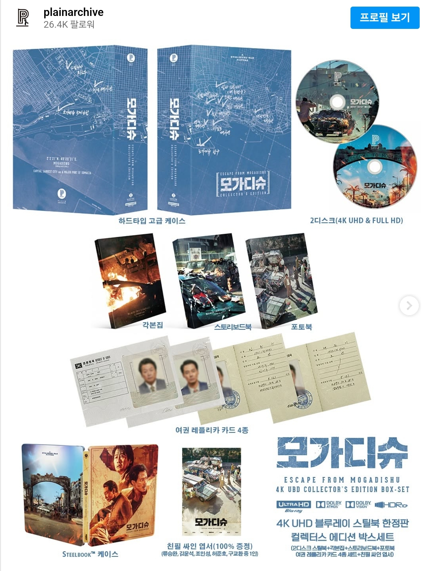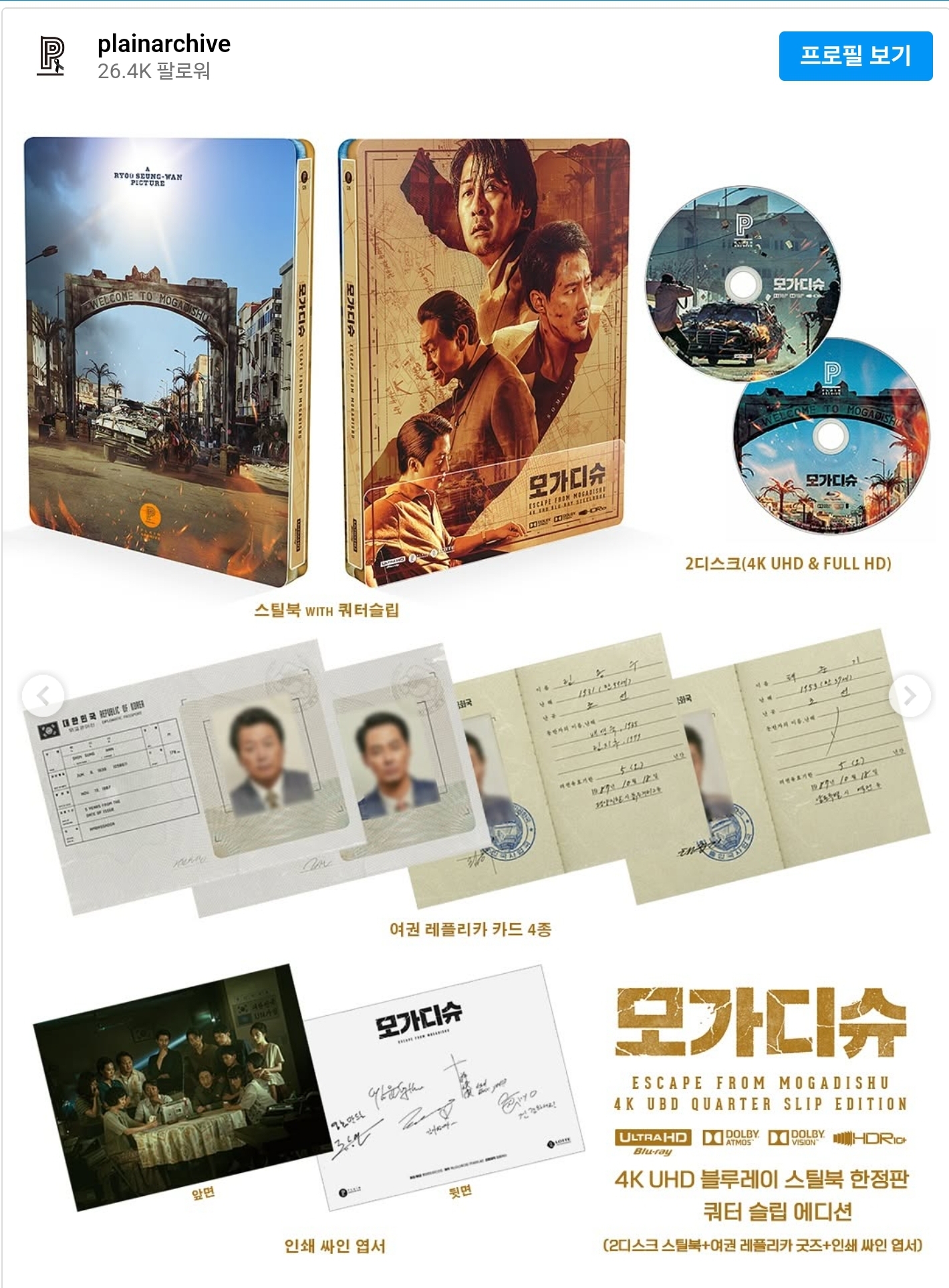 이번에 플레인 아카이브에서 2021년에 개봉한 영화 모가디슈를 4K블루레이로 프리오더를 오늘 오후 4시부터 진행했습니다.