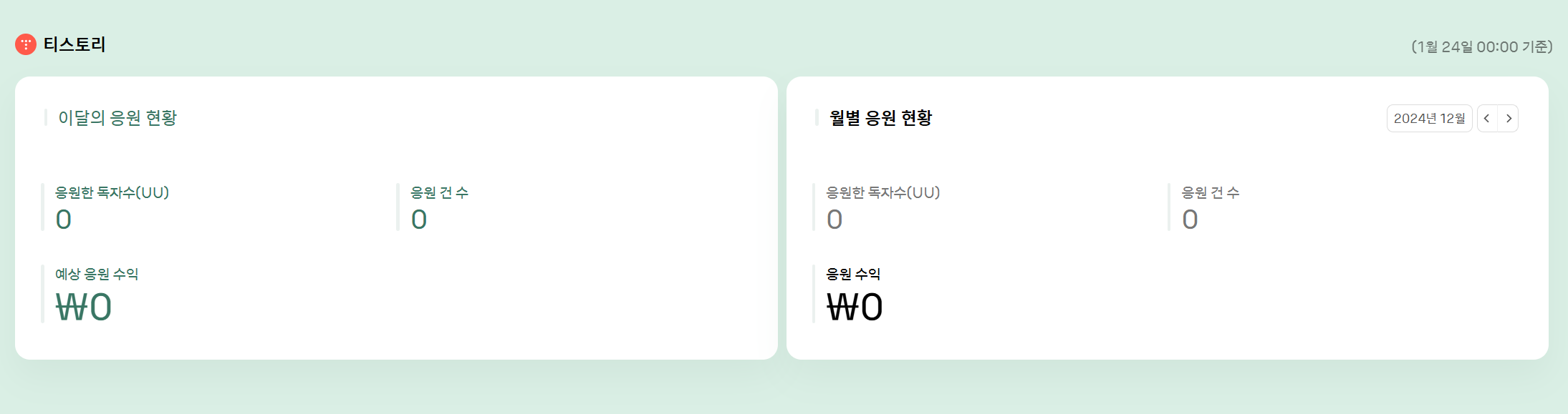 티스토리의 공식 서비스 중 하나로 '응원받기' 기능이 생깁니다.