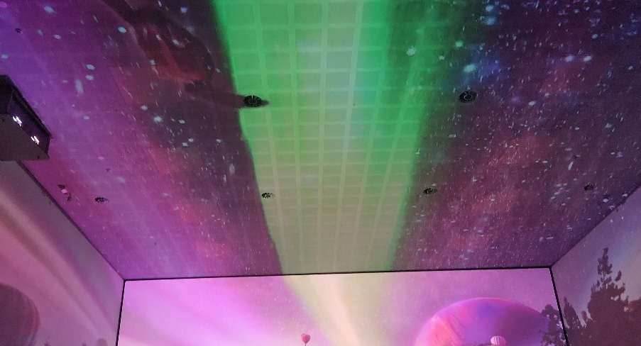 기존 PLF관과 유사한 느낌이지만 천장까지 포함한 4면 상영을 위해서 천장까지 밝은 화이트톤으로 칠한 모습을 볼 수 있습니다.