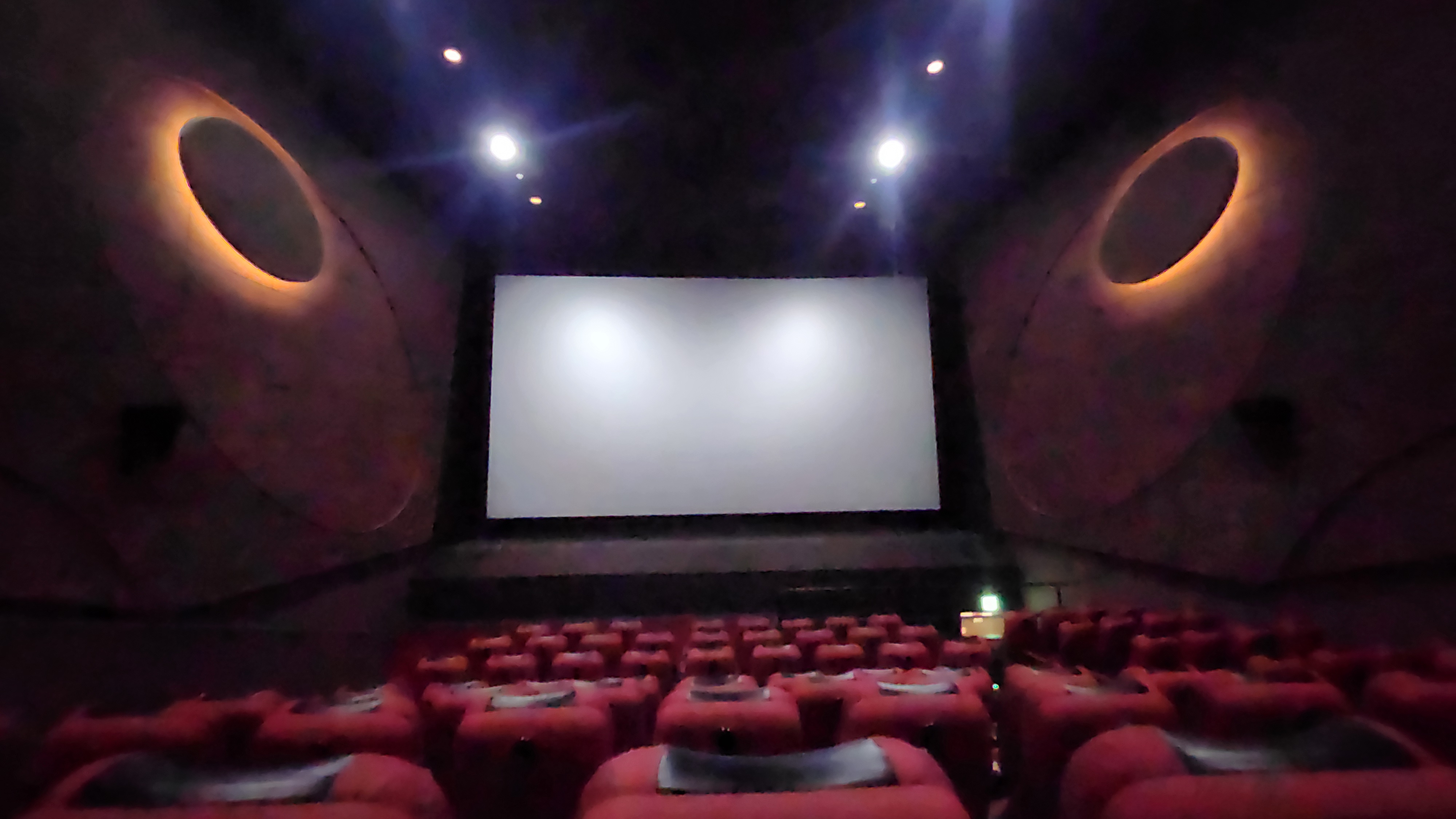 다만 제일 불만이었던 점은 두 번째 사진에서도 알 수 있듯 스크린 우측 하단에 있는 비상구입니다. 이 비상구 조명이 영화 상영 내내 불이 켜져있다보니 꽤나 거슬립니다. 그 점을 제외하면 영사 품질은 평범한 일반 상영관 수준에서 조금 음향이 괜찮은 수준이라고 생각하시면 되겠습니다.