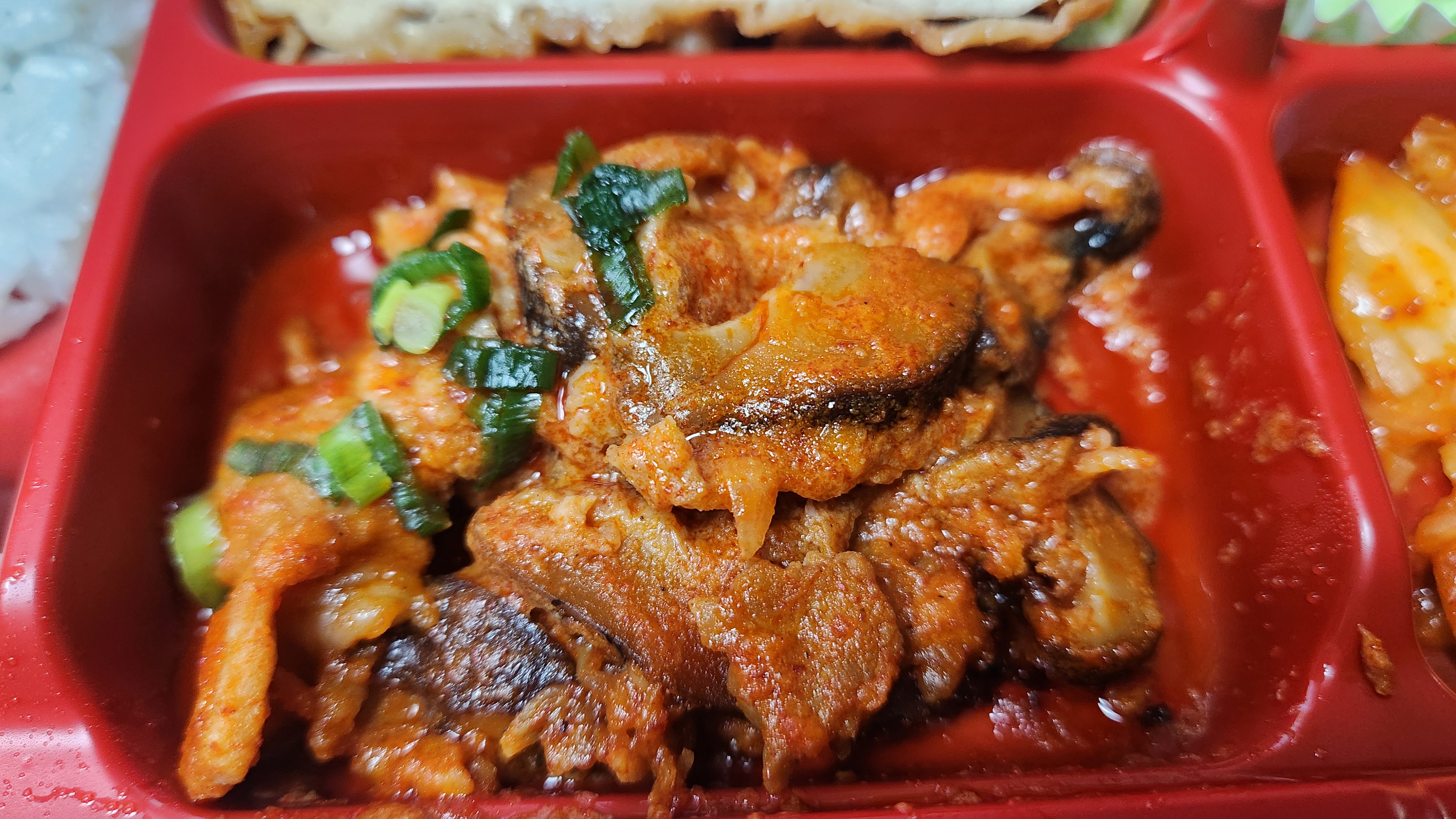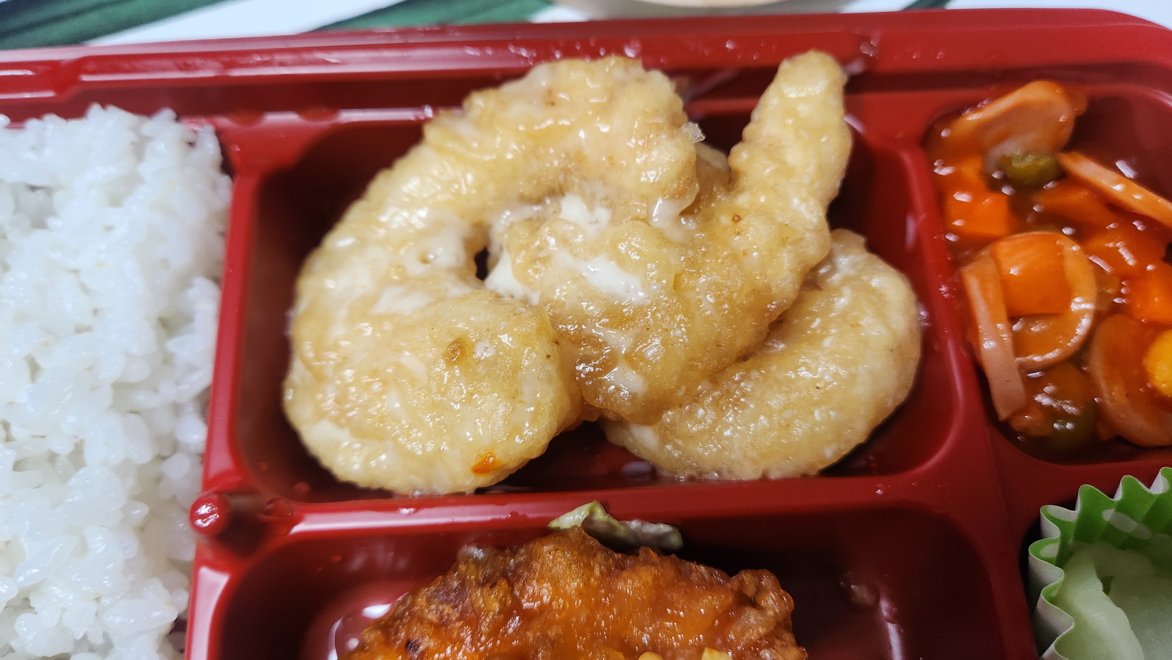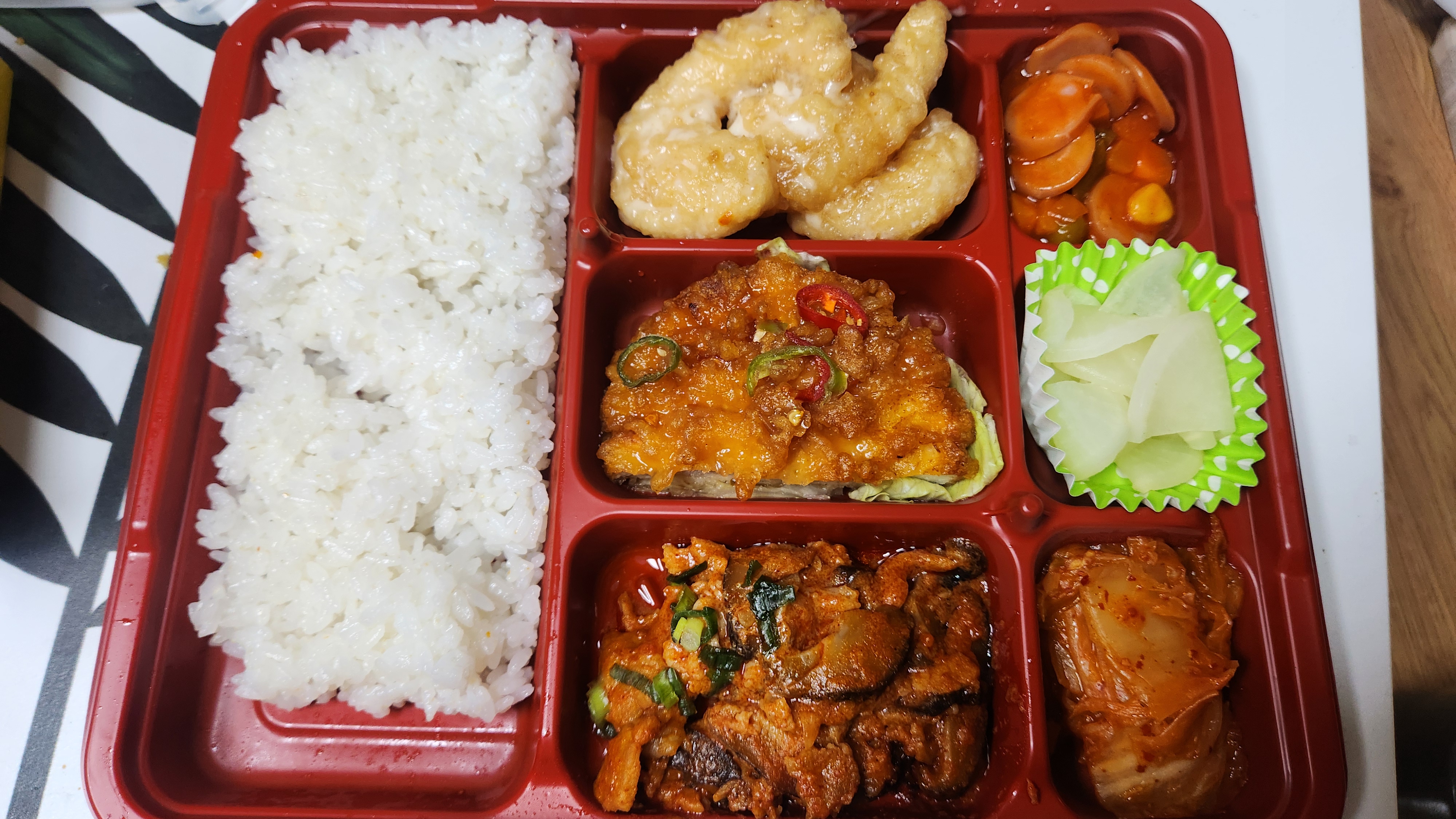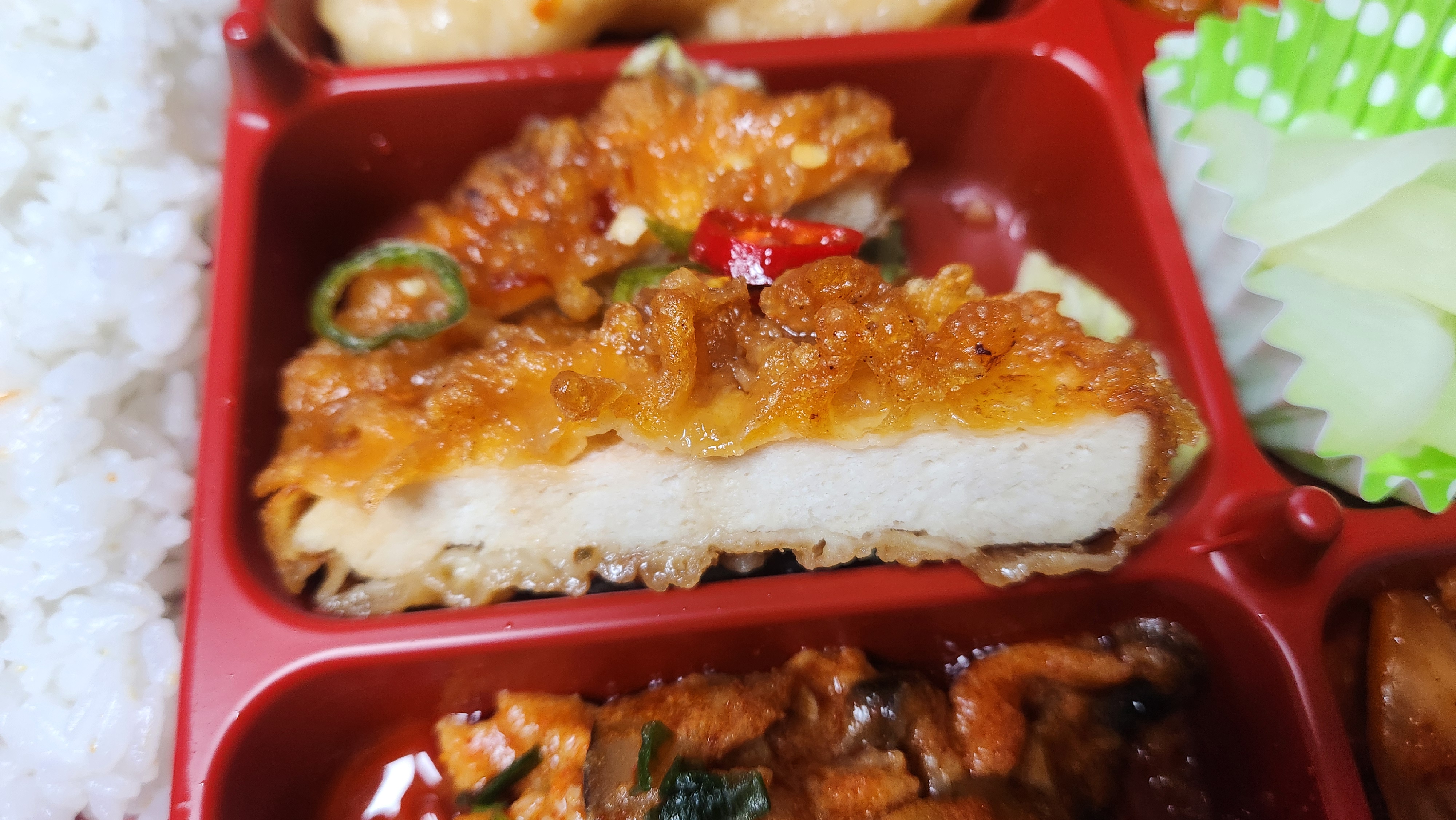 중화요리도시락이라는 이름에 맞게 메인 반찬으로 중화요리 반찬이 들어가 있는 모습입니다.