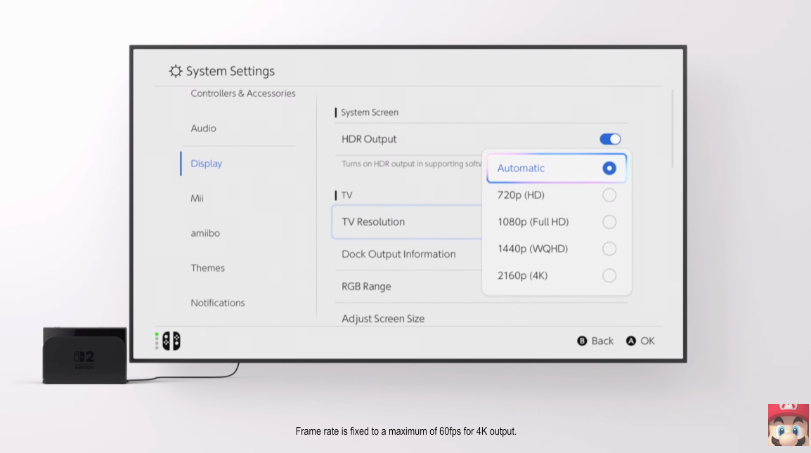 닌텐도 스위치2 신규 독은 4K 해상도를 지원한다고 합니다!