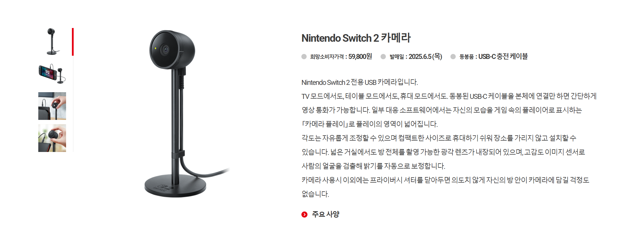 그리고 이번 닌텐도 스위치2에서 새로 추가된 카메라는 59,800원입니다.