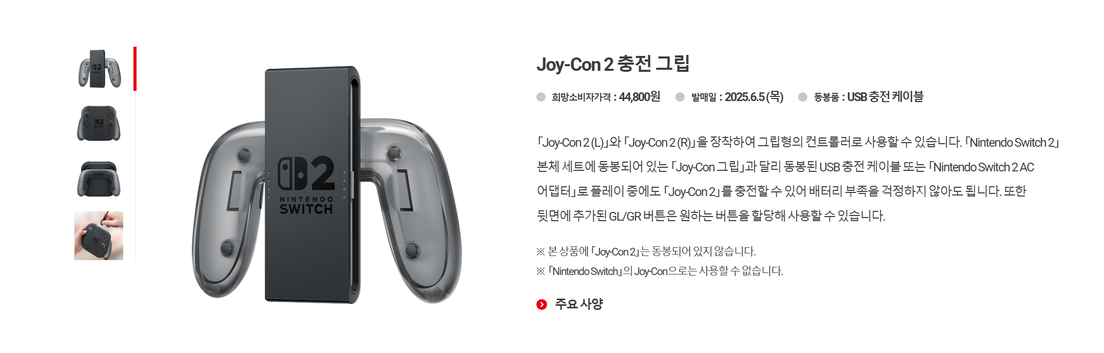 조이콘2 충전 그립은 44800원입니다. 조이콘1 충전 그립은 27800원이었습니다.