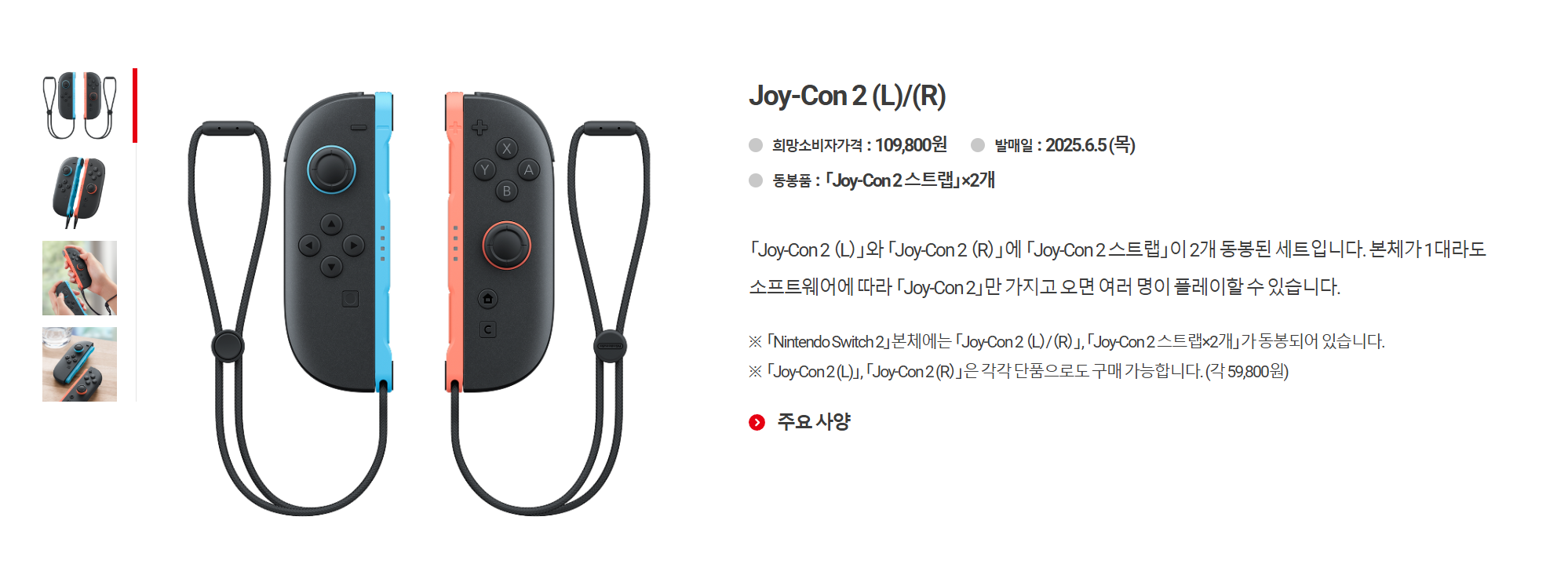 조이콘의 경우 스위치2는 10만 9800원입니다. 스위치1은 79800원이었지요.