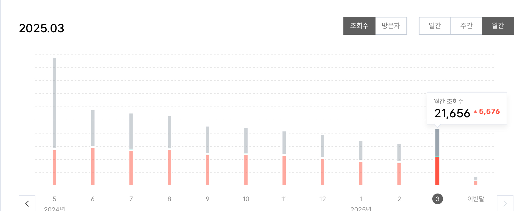 이로 인해 작년 11월 이후로 4개월만에 월간 조회수가 2만 회를 돌파했습니다.