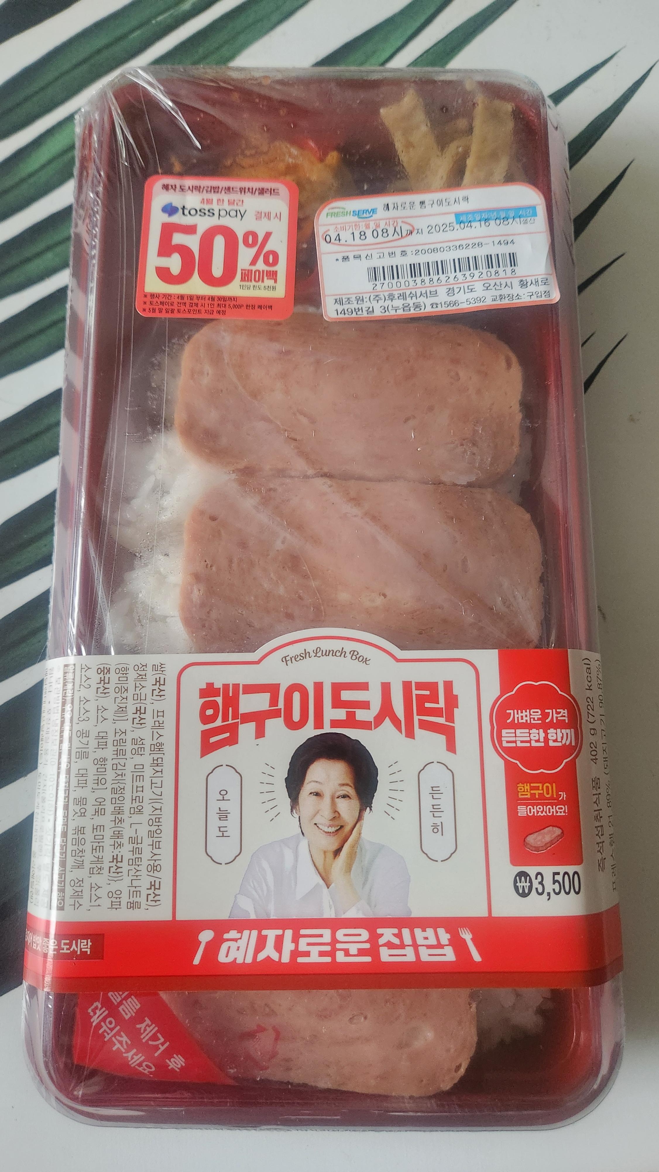 이번 햄구이 도시락은 착한가격 3500원으로 출시된 3가지 종류 중 하나입니다.