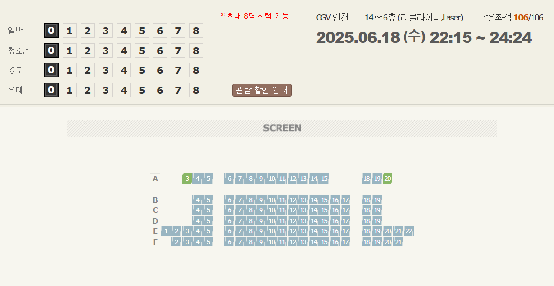 그러던 중 최근 인천CGV의 상영관 중 14관이 리클라이너 좌석이 설치된 것으로 확인됩니다.