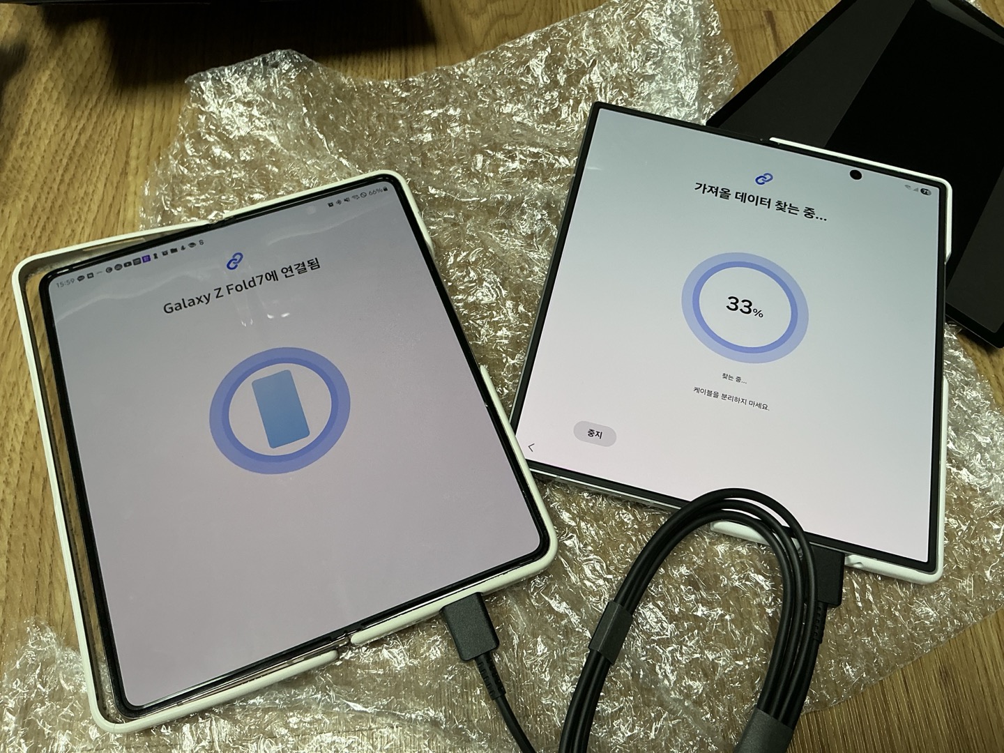 기존에 사용하던 폴드4에서 데이터를 이전합니다. 거의 2시간 가량 걸렸습니다.