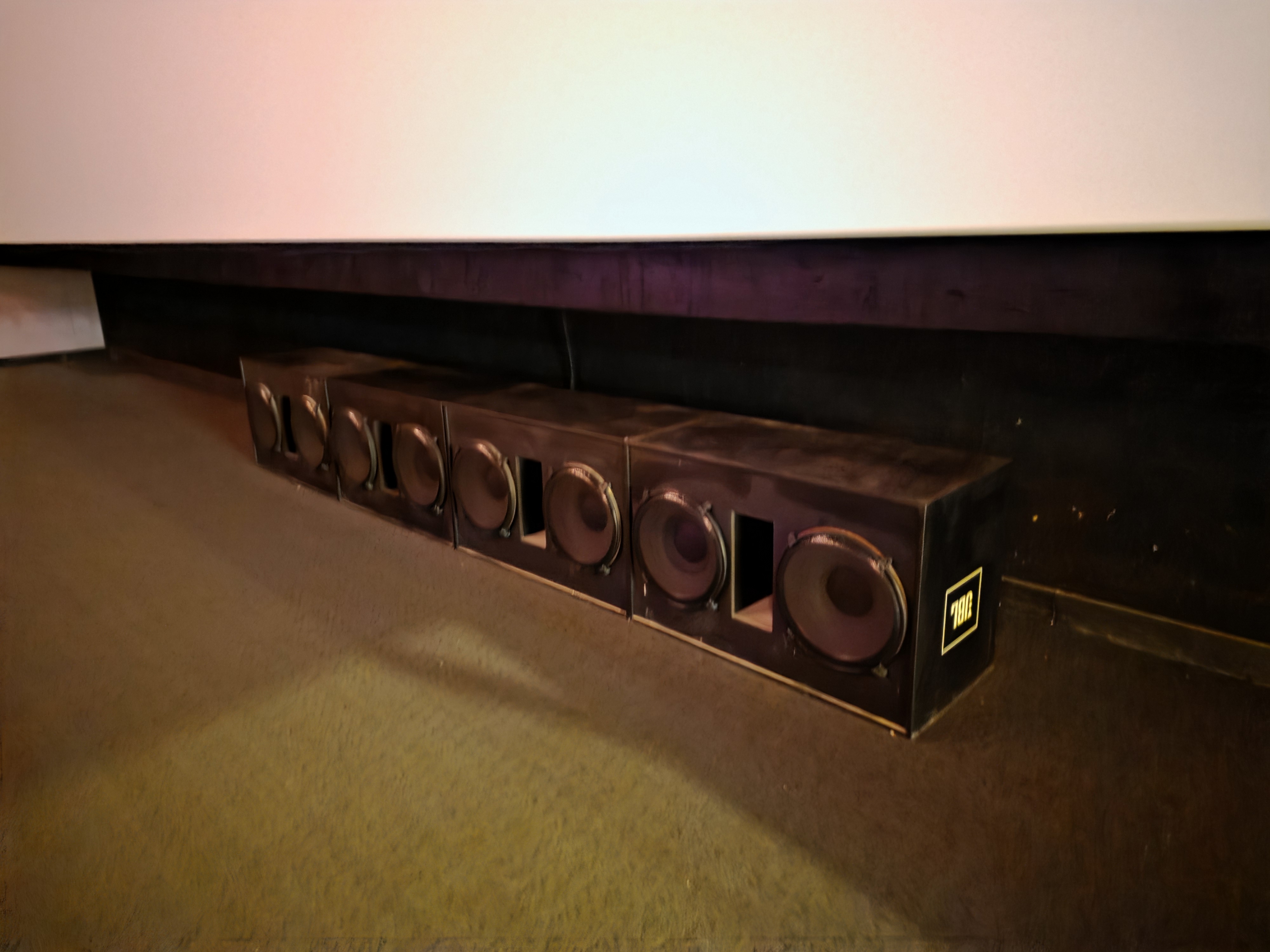 특히 우퍼 배치의 경우 우퍼 4개가 스크린 밑에 배치가 되어 있는데 인천CGV에서 오랫동안 영화를 보러 다녔음에도 이렇게 우퍼가 눈에 잘 보이게 배치가 되는 경우를 잘 못봤습니다. 대체로 CGV를 다니면서 우퍼를 이렇게 직접 노출시키는 경우는 거의 보기 드문 모습이었습니다.