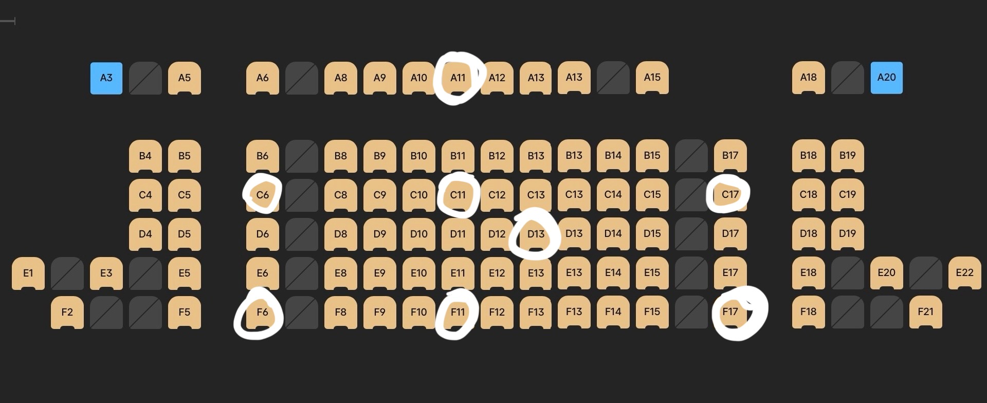 명당을 꼽는다면 C,D,E열의 8번부터 15번 좌석구역이라고 보시면 되겠습니다.